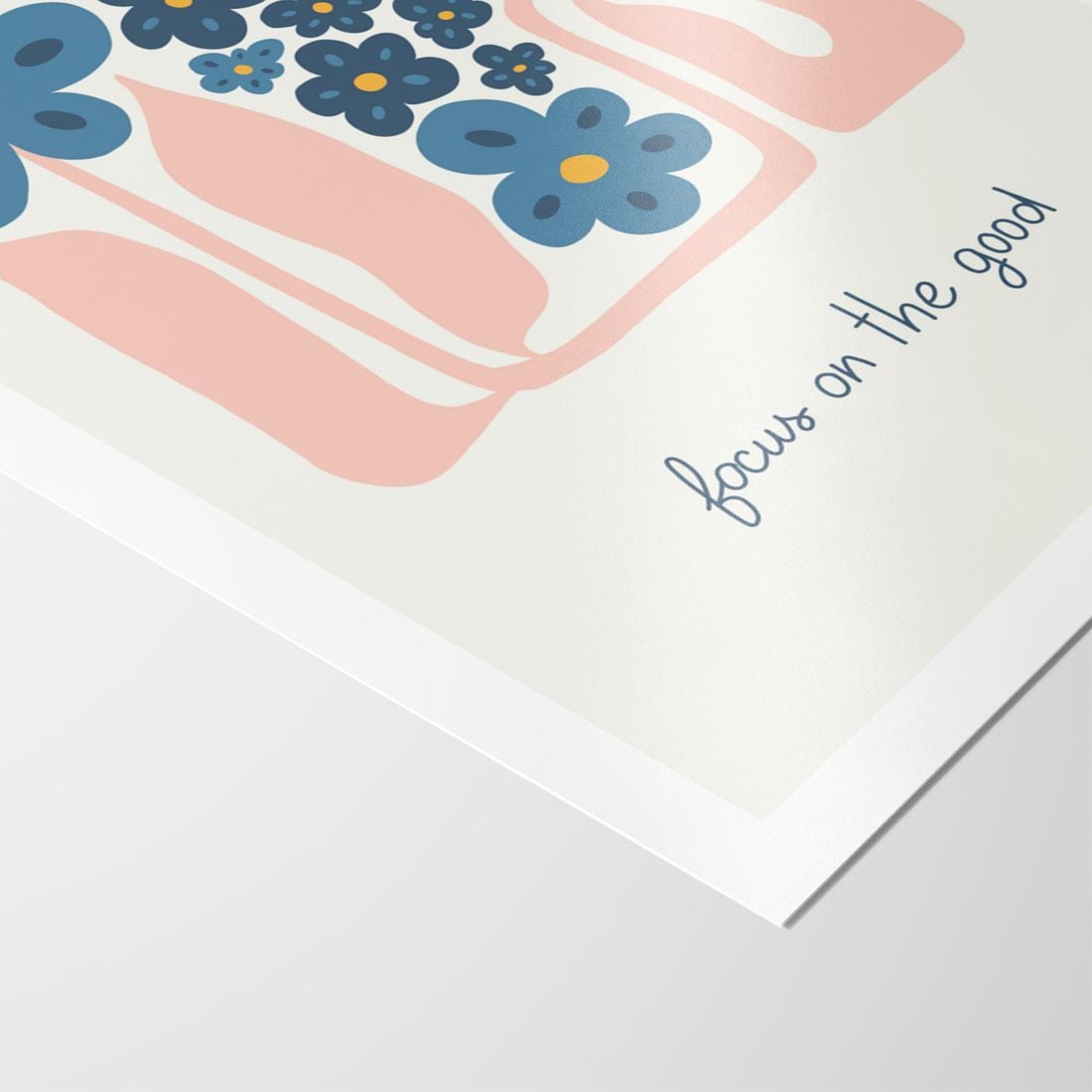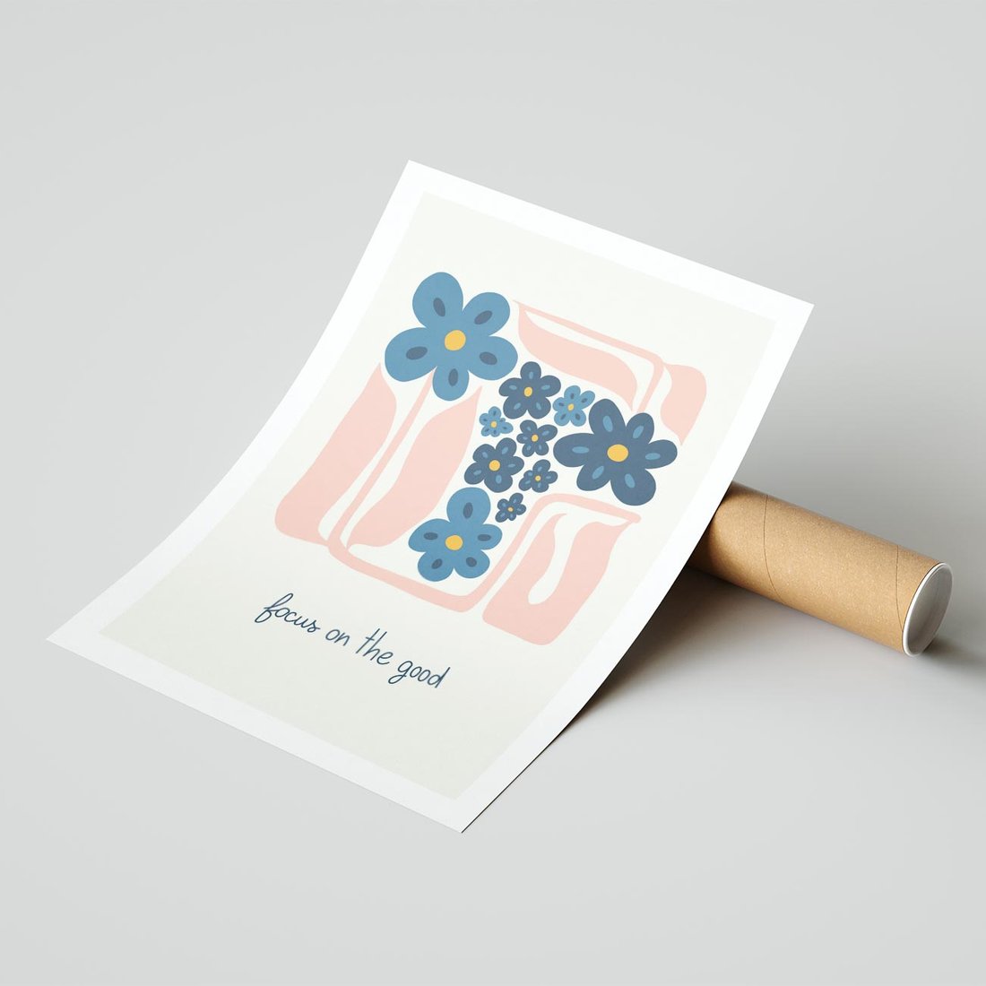 Ta minimalistyczna kwiatowa kompozycja w pastelowych kolorach tworzy spokojną i pozytywną afirmację. To harmonijne połączenie prostoty formy roślinnej z inspirującą typografią. Ten obraz wprowadzi subtelny akcent natury i pozytywnego myślenia do wnętrza, zachowując jednocześnie estetykę minimalistycznego piękna.
