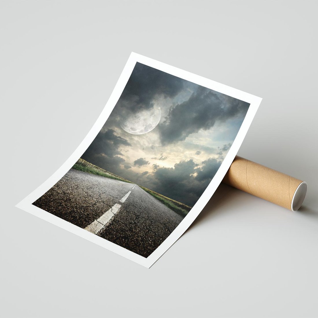 Plakat bez ramy 40x50 - magia nocnej drogi - droga, księżyc