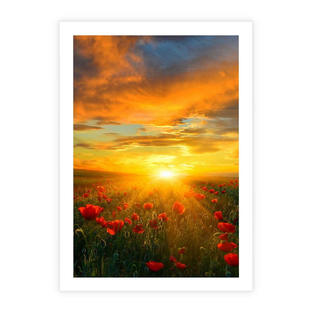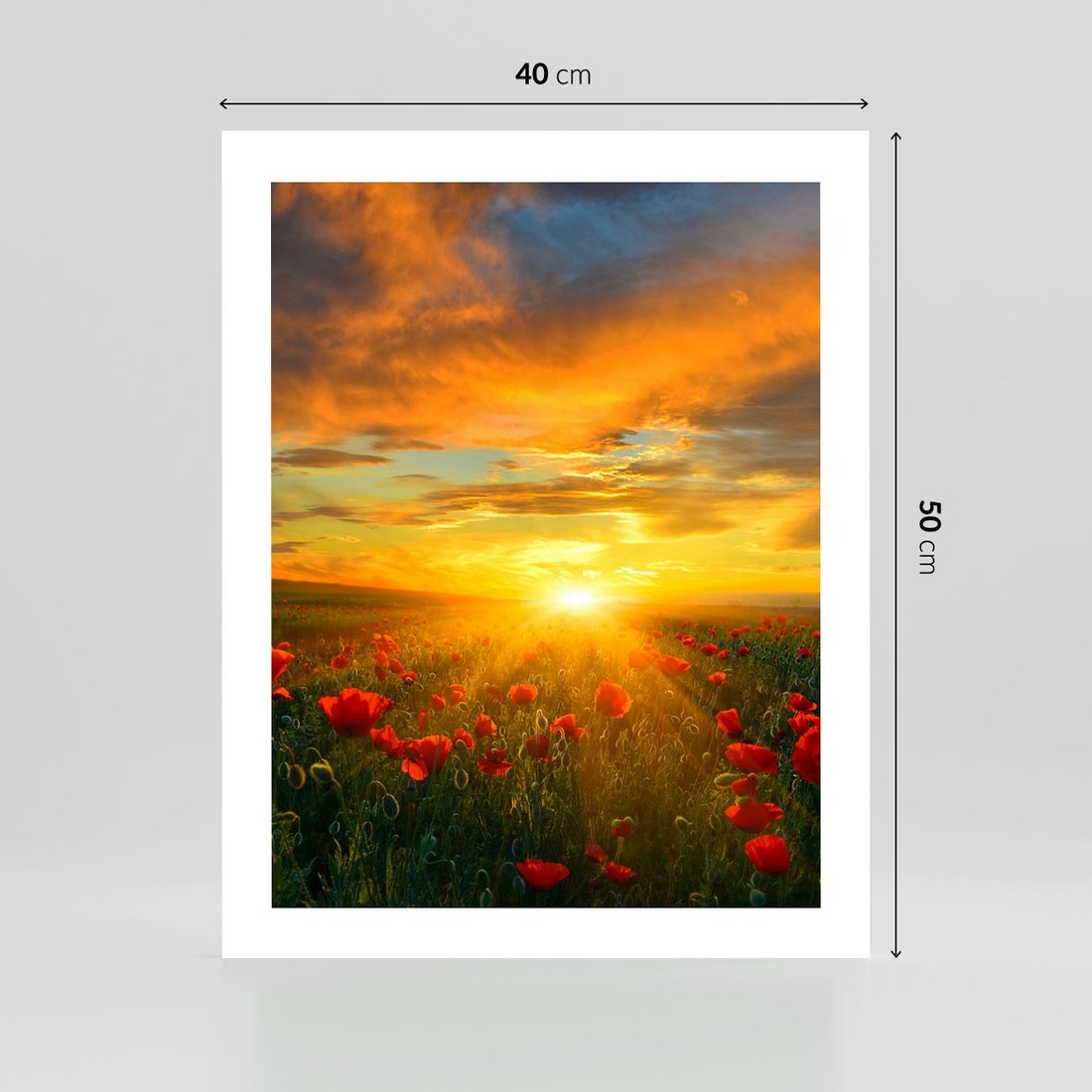 - Plakat bez ramy 40x50 - Magia zachodu słońca na łące z makami