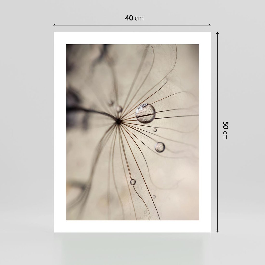 Plakat bez ramy 40x50 - Makro Uroda: Kropla na Dmuchawcu - zbliżenie makro, kropla wody na ziarenku dmuchawca