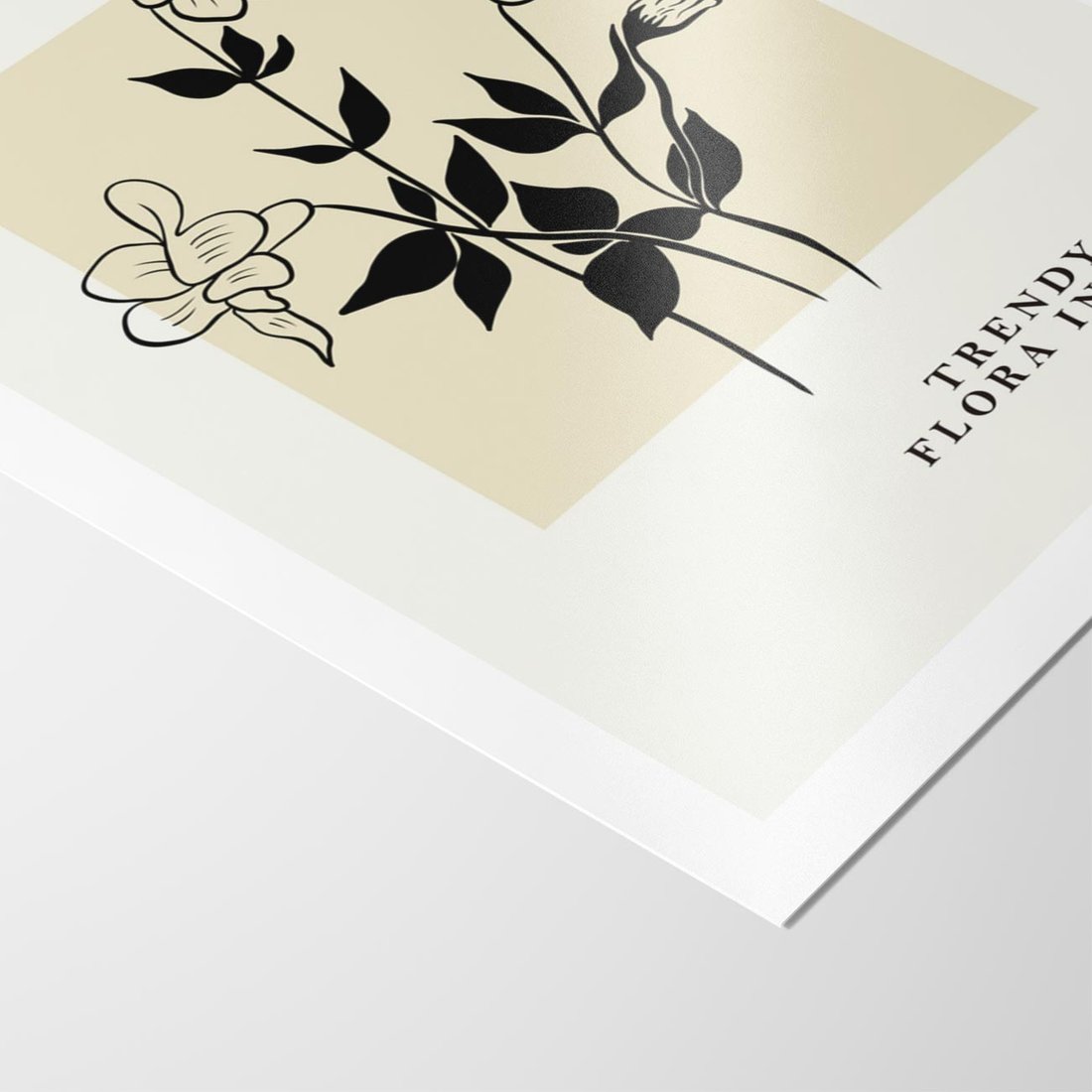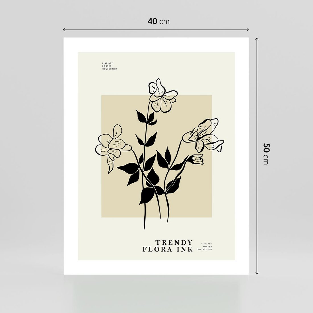 Piękne kwiaty w połączeniu z elegancką typografią tworzą minimalistyczną sztukę. Delikatny beżowy akcent dodaje subtelności całej kompozycji. To obraz, który wprowadzi do Twojego wnętrza przyjemny akcent roślinności, zachowując jednocześnie estetykę minimalizmu.