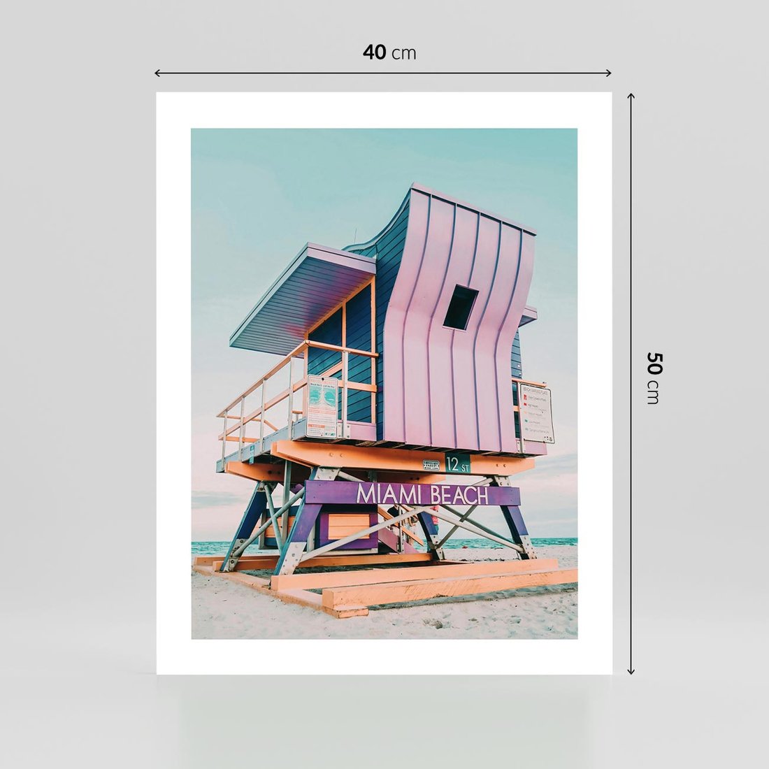 Plakat bez ramy 40x50 - Miami Beach - plaża miami, domek ratownika