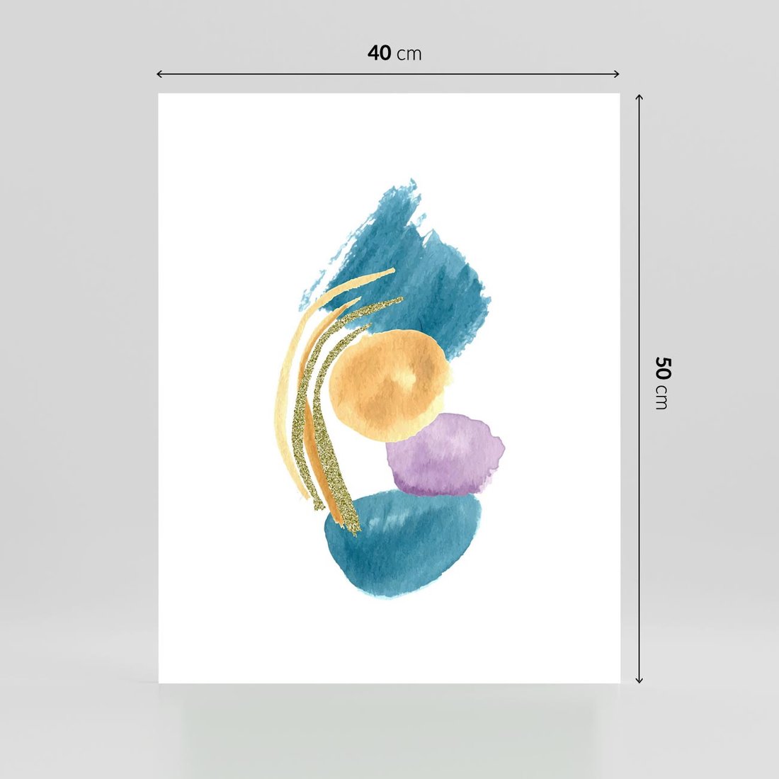 Plakat bez ramy 40x50 - Migocące Barwy Akwarel - akwarelowe plamy w odcieniach błękitu, złote kreski