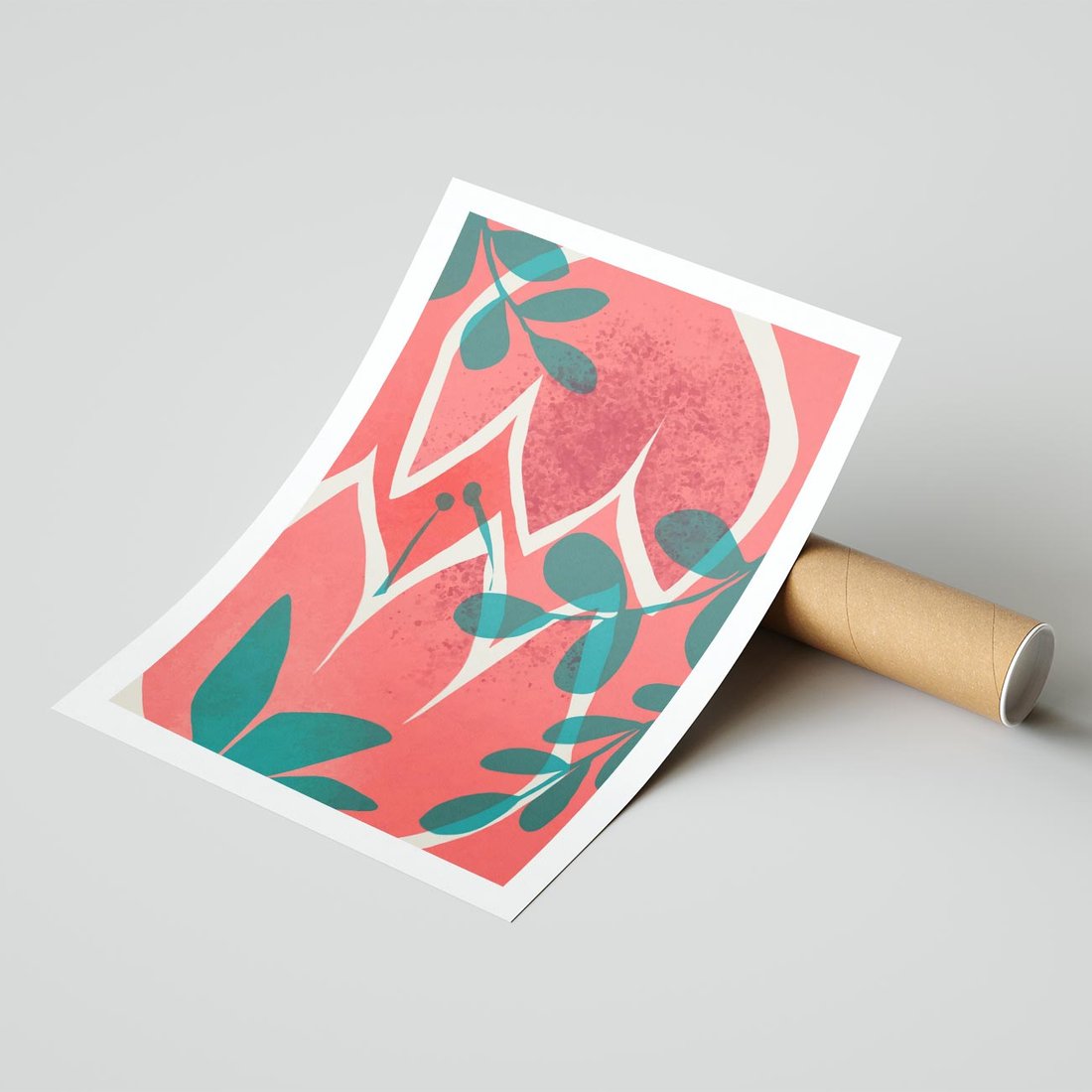 Nowoczesny plakat z abstrakcyjnymi kwiatami w odcieniach różu, emanujący nowoczesną sztuką i pięknem natury.