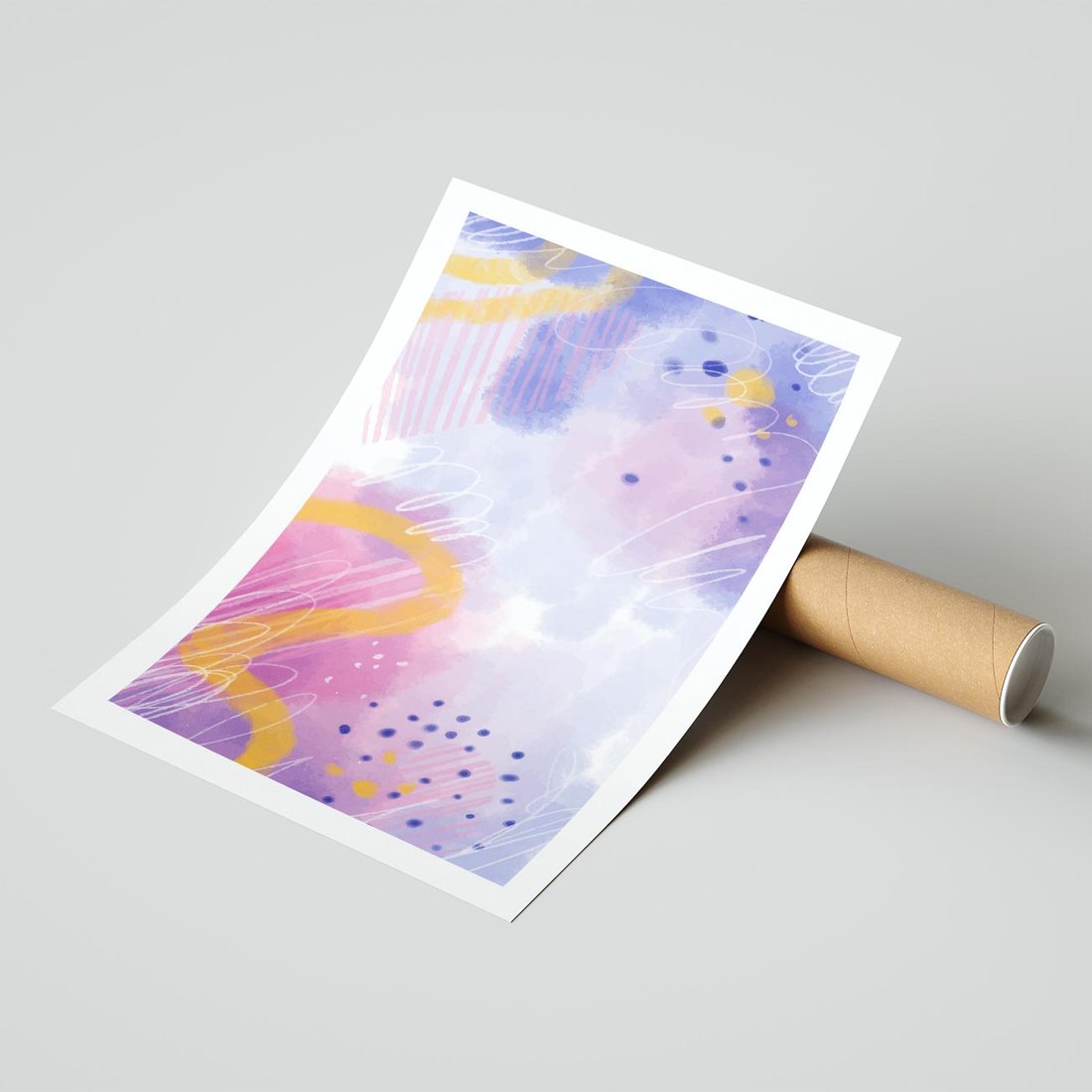 Nasz abstrakcyjny plakat w pastelowych fioletowych i różowych odcieniach tworzy fascynujący efekt za sprawą nieregularnych linii. To wyjątkowe dzieło sztuki wprowadza delikatność i wyrazistość do przestrzeni, zachęcając do interpretacji i inspirując do refleksji.