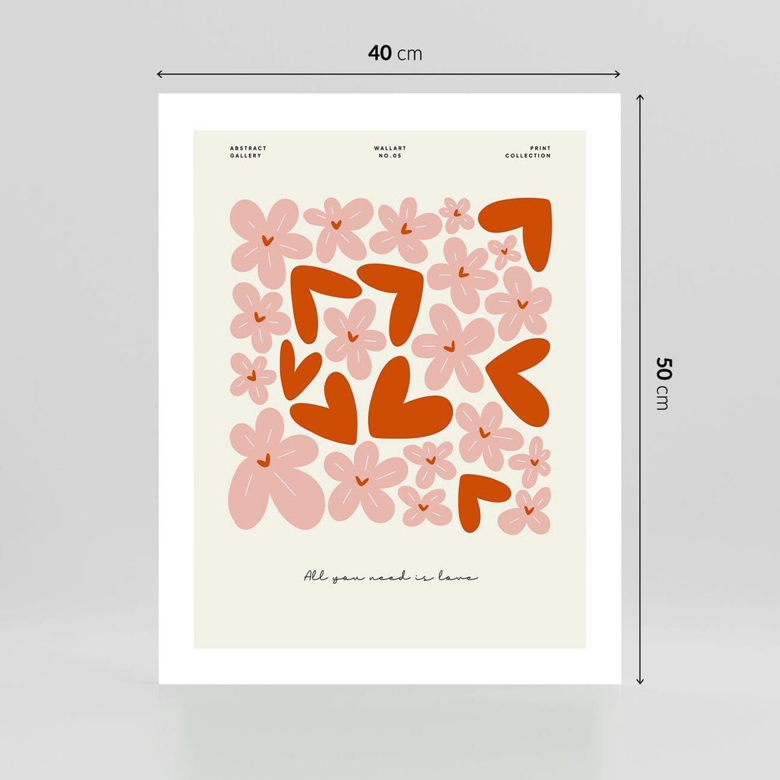Plakat bez ramy 40x50 - Miłość w Kompozycji - grafika, kompozycja kwiaty i serca