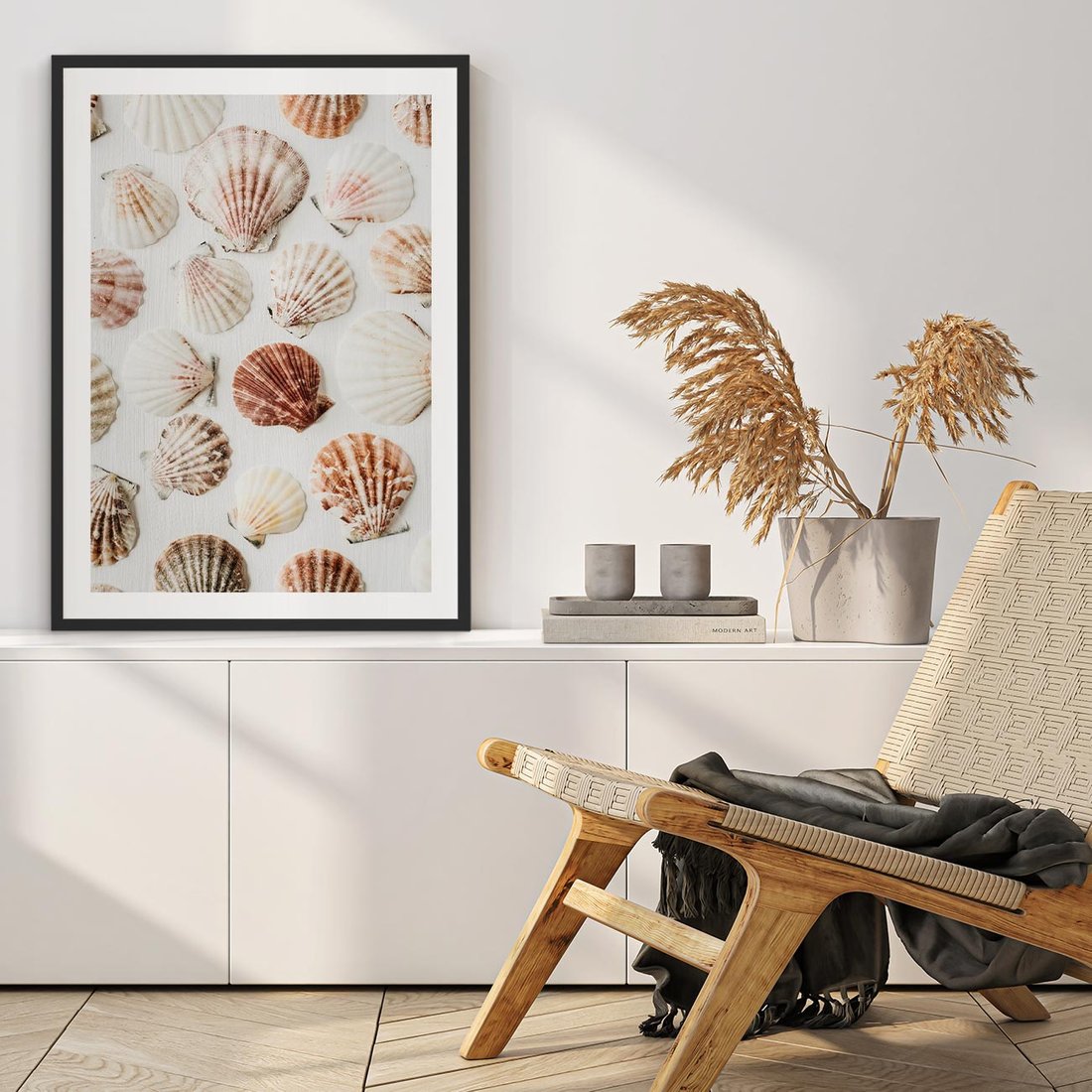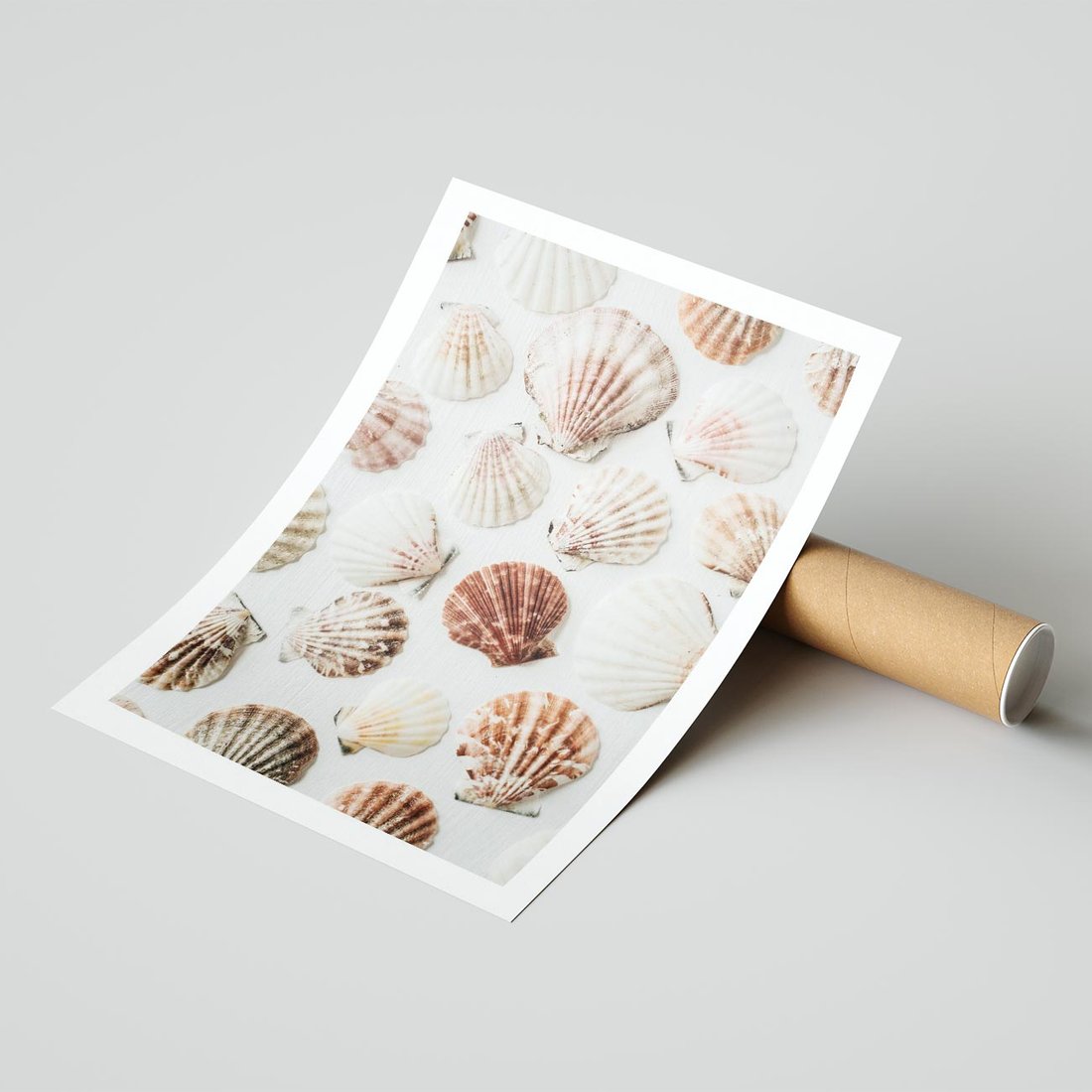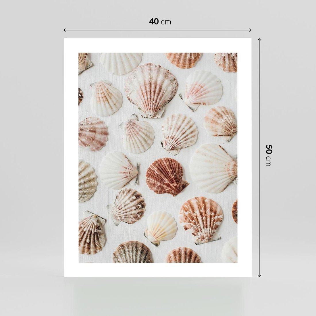 - Plakat bez ramy 40x50 - Morska Delikatność: Muszelki na Białym Tle