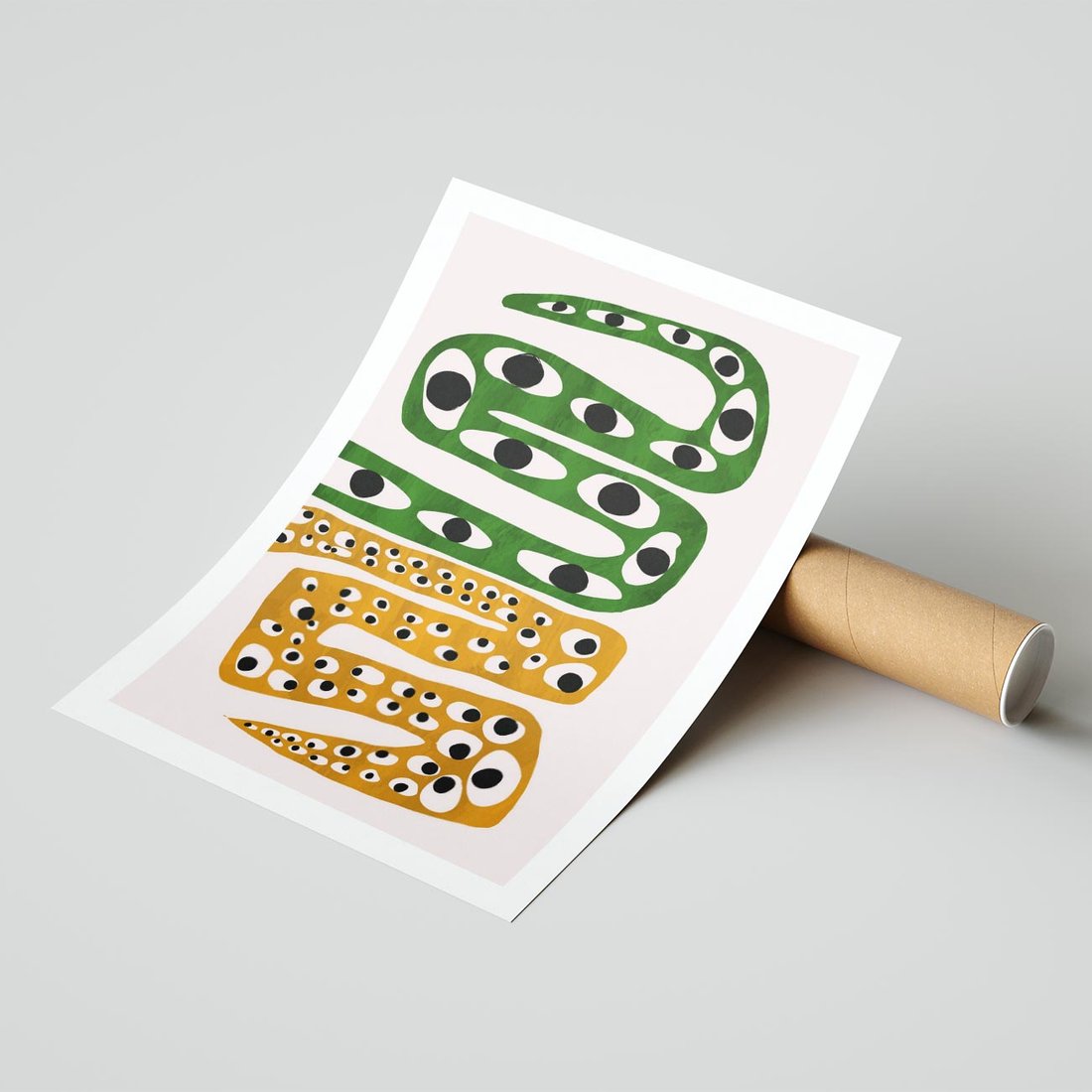 Nasz abstrakcyjny obraz to gra dziwnych kształtów, które przypominają zwinne węże, tańczące w tonacjach żółtego i zielonego. Ta odważna kompozycja wywołuje niezwykłe wrażenie, prowokując do interpretacji i zapraszając do zanurzenia się w nowoczesnej sztuce. To wyjątkowy element dekoracyjny, który wniesie do Twojej przestrzeni energetyczny i zaskakujący akcent.