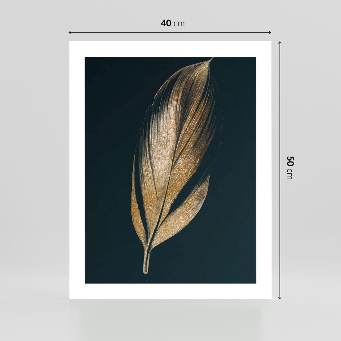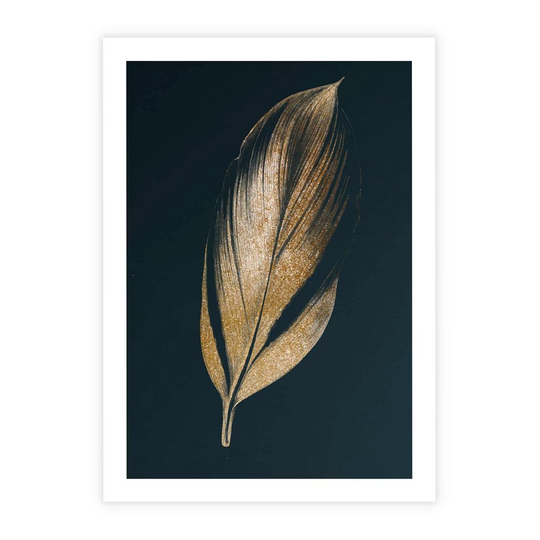 Plakat bez ramy 40x50 - Mroczne Złoto - nowoczesna grafika, złoty liść na czarnym tle