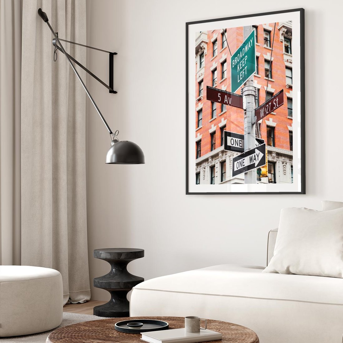 Poczuj atmosferę Nowego Jorku za pomocą obrazu przedstawiającego drogowskaz. Przenieś się w świat metropolii i dodaj do swojego wnętrza nutkę miejskiego stylu.