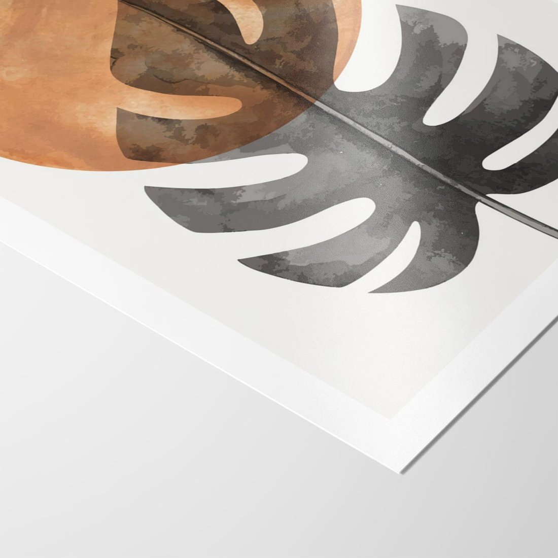 Nasza grafika to połączenie natury i nowoczesnego designu. Ten czarno-biały szkic przedstawia elegancki liść monstery w towarzystwie miedzianego koła, co tworzy minimalistyczną i stylową kompozycję. To idealna dekoracja, aby wprowadzić do swojego wnętrza harmonię między naturą a sztuką.