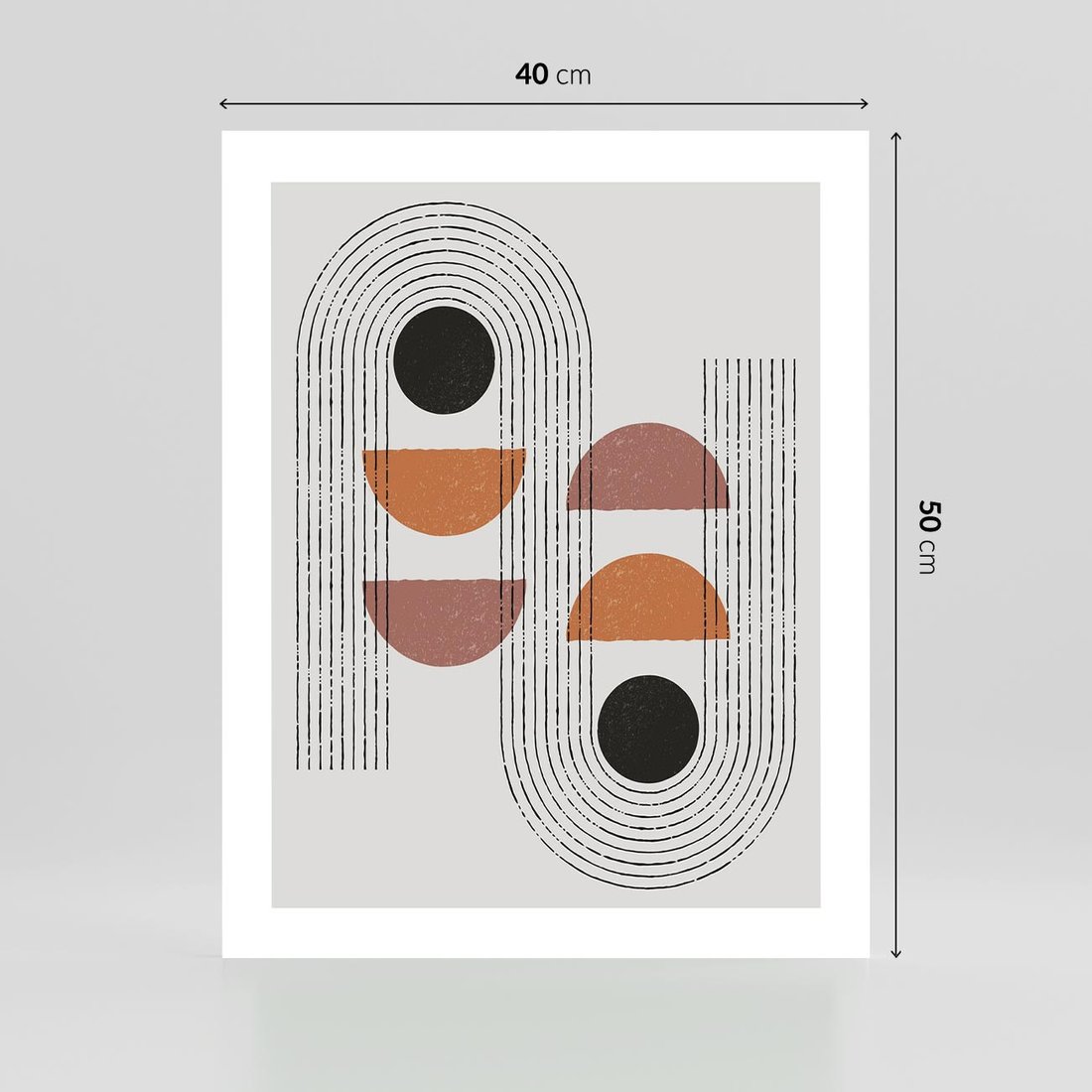 Nasza grafika to wyraz nowoczesności i estetyki geometrycznej. Ta kompozycja graficzna wykorzystuje geometryczne kształty i linie, tworząc unikalny obraz w duchu stylu modernistycznego. To idealna dekoracja, aby wprowadzić do swojego wnętrza nowoczesny design i geometrię.