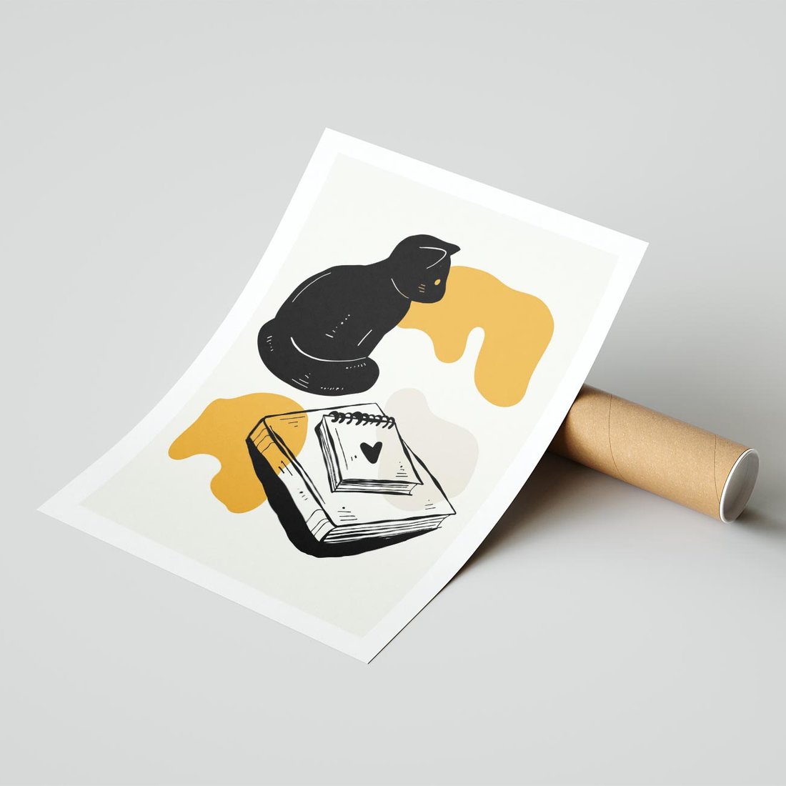Nowoczesny plakat przedstawia grafikę kota w minimalistycznym stylu, tworząc elegancką i stylową kompozycję.