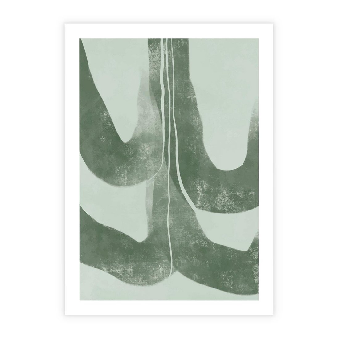 Plakat bez ramy 40x50 - Nurtująca Kompozycja Zieleni - abstrakcyjne delikatne zielone linie, podobne do gałęzi kwiatów