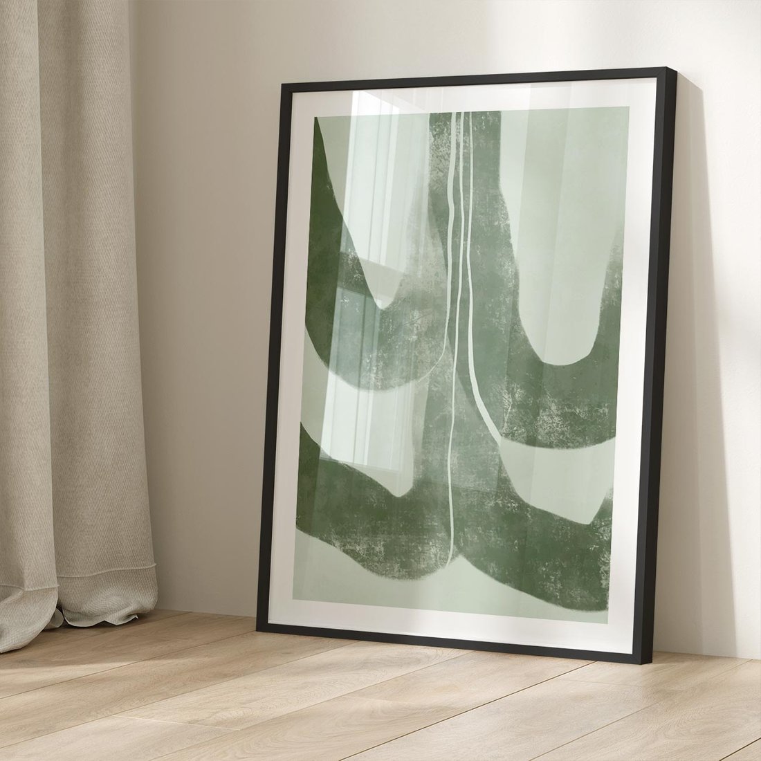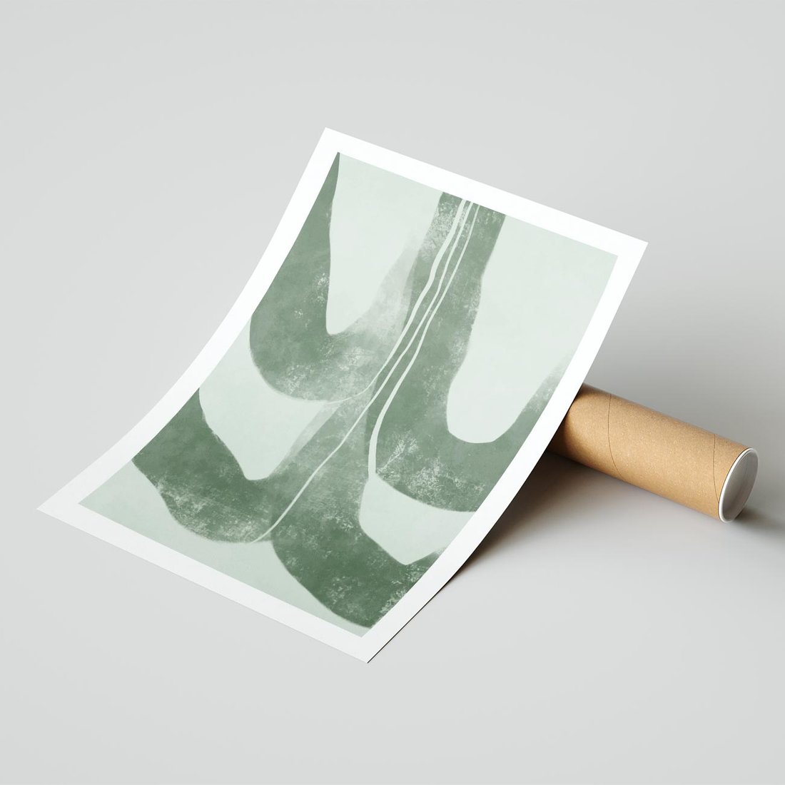 Ten nowoczesny plakat przedstawia abstrakcyjne, delikatne zielone linie przypominające gałęzie kwiatów. To subtelne połączenie kształtów wprowadza do Twojej przestrzeni nowoczesność i naturalność, tworząc jednocześnie interesujący akcent artystyczny.