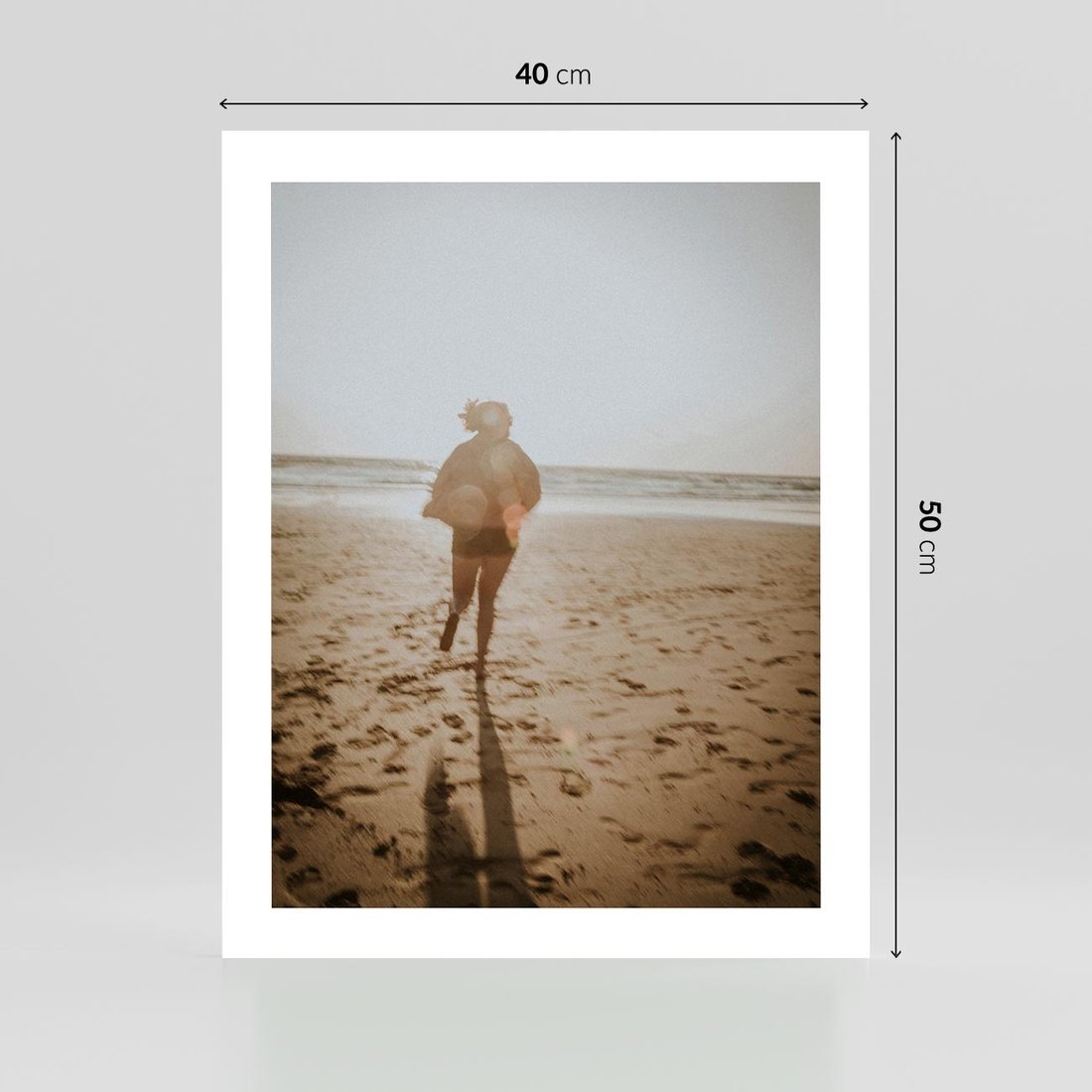 Plakat bez ramy 40x50 - O Zachodzie Słońca - klimatyczna fotografia, postać biegnie po plaży
