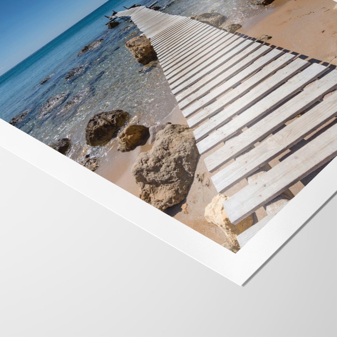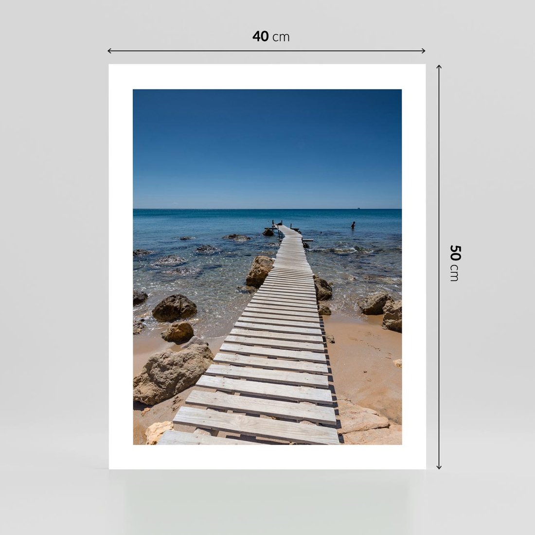 Przenieś się na spokojną plażę nad morzem dzięki obrazowi na płótnie. Odczuj relaksujący szum fal i ciepły piasek pod stopami, gdy przenosisz się na pomost, który zapewni Ci chwilę wytchnienia i ukojenia.