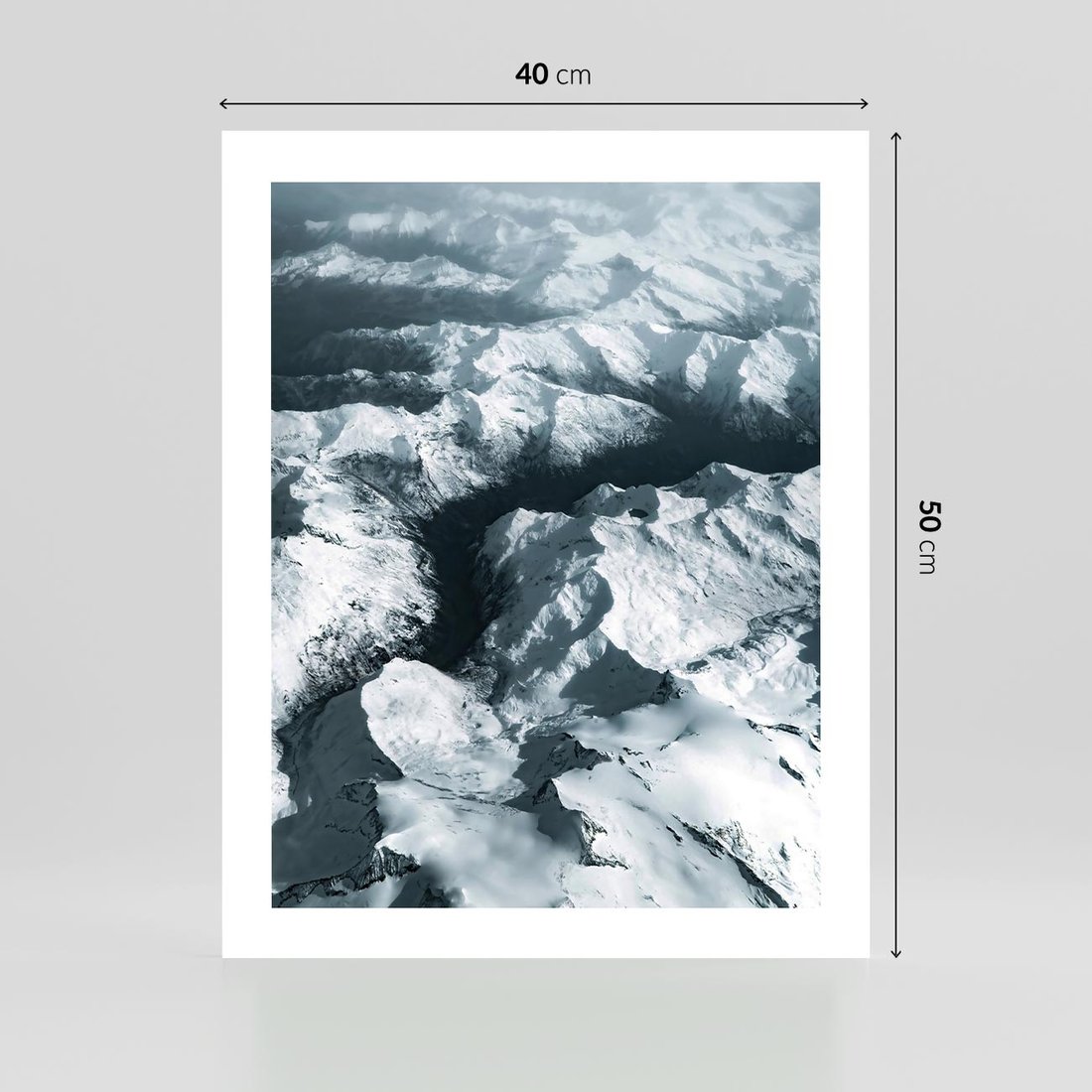 Plakat bez ramy 40x50 - Ośnieżone Szczyty z Wysoka - ośnieżone szczyt górskie, zdjęcie z lotu ptaka