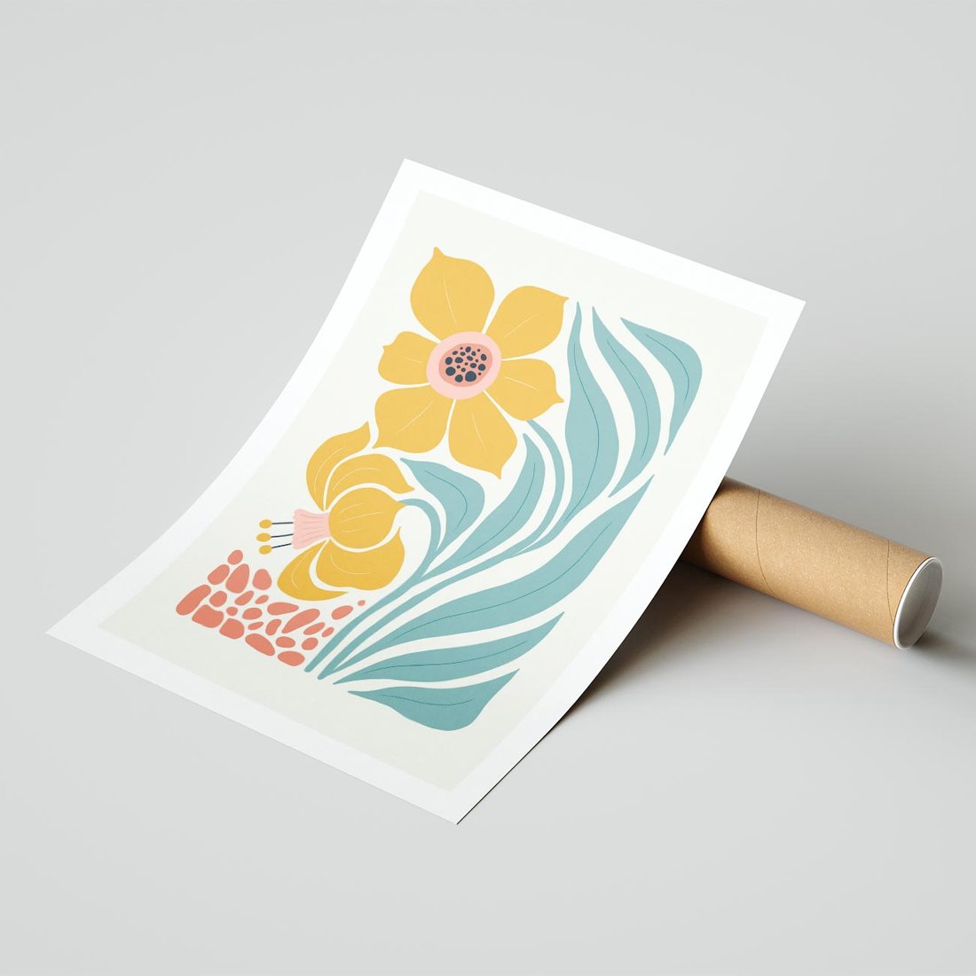 Ten nowoczesny plakat łączy kwiatowe motywy z delikatnymi pastelowymi kolorami, tworząc wyjątkową wizję piękna. Sztuka ta wprowadzi subtelność i harmonię do Twojego wnętrza.