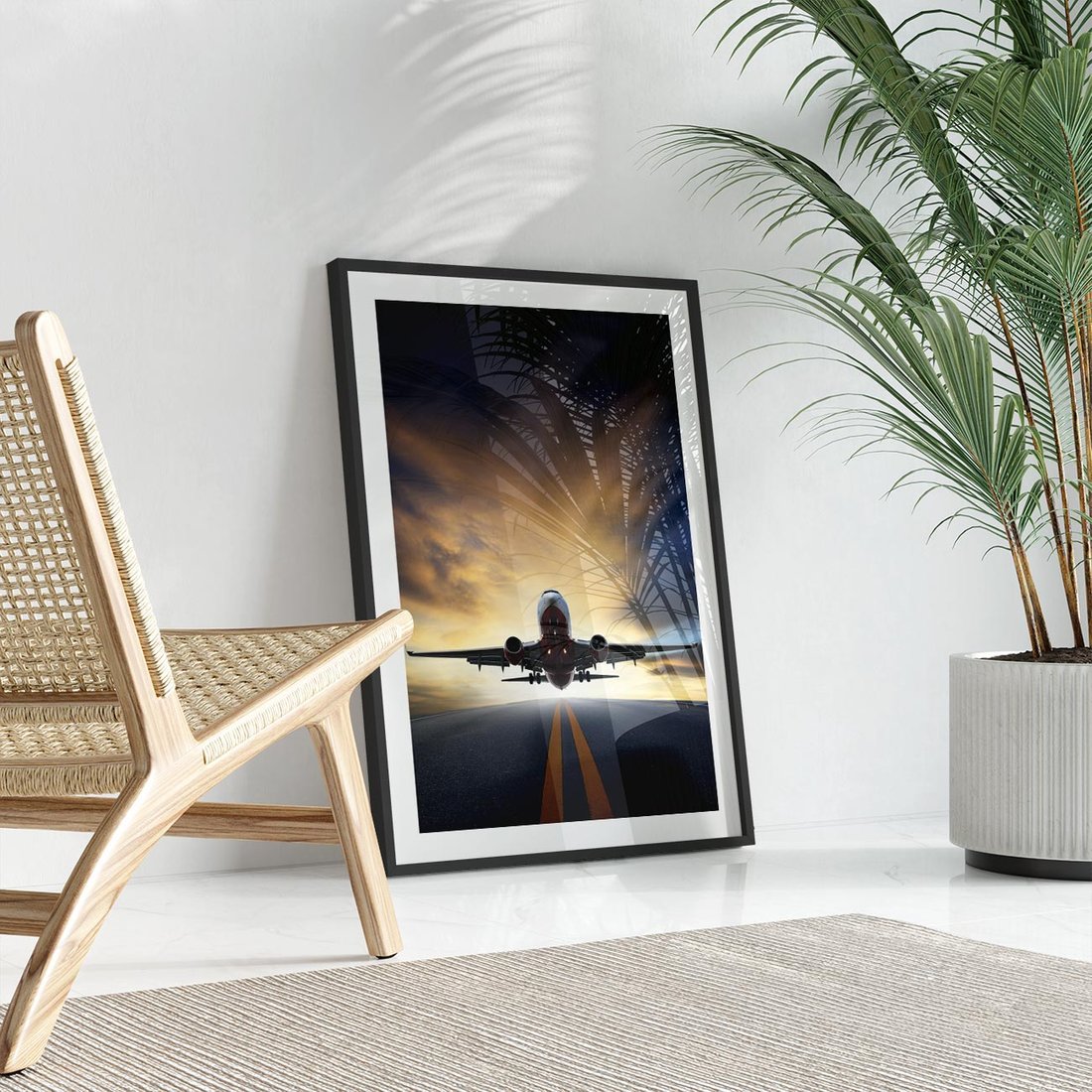 - Plakat bez ramy 40x50 - Podróż samolotem w pejzaż