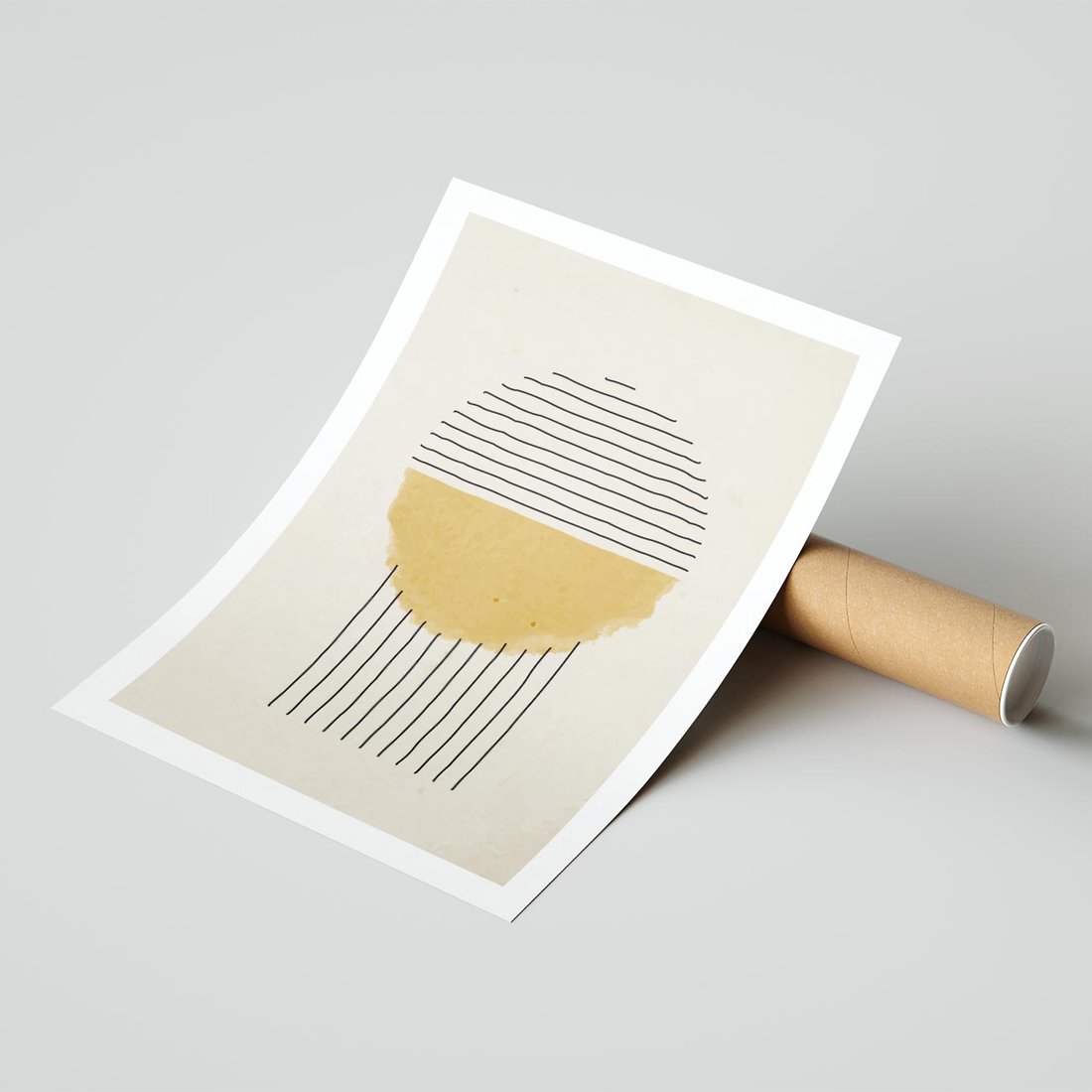 Akwarelowa plama z geometrycznymi, szkicowanymi kształtami, które tworzą regularność i prostotę, to doskonały przykład połączenia abstrakcji z geometrycznym stylem. To idealny element dekoracyjny dla tych, którzy cenią sobie minimalistyczny design, a jednocześnie pragną wprowadzić do swojej przestrzeni subtelny i artystyczny akcent.