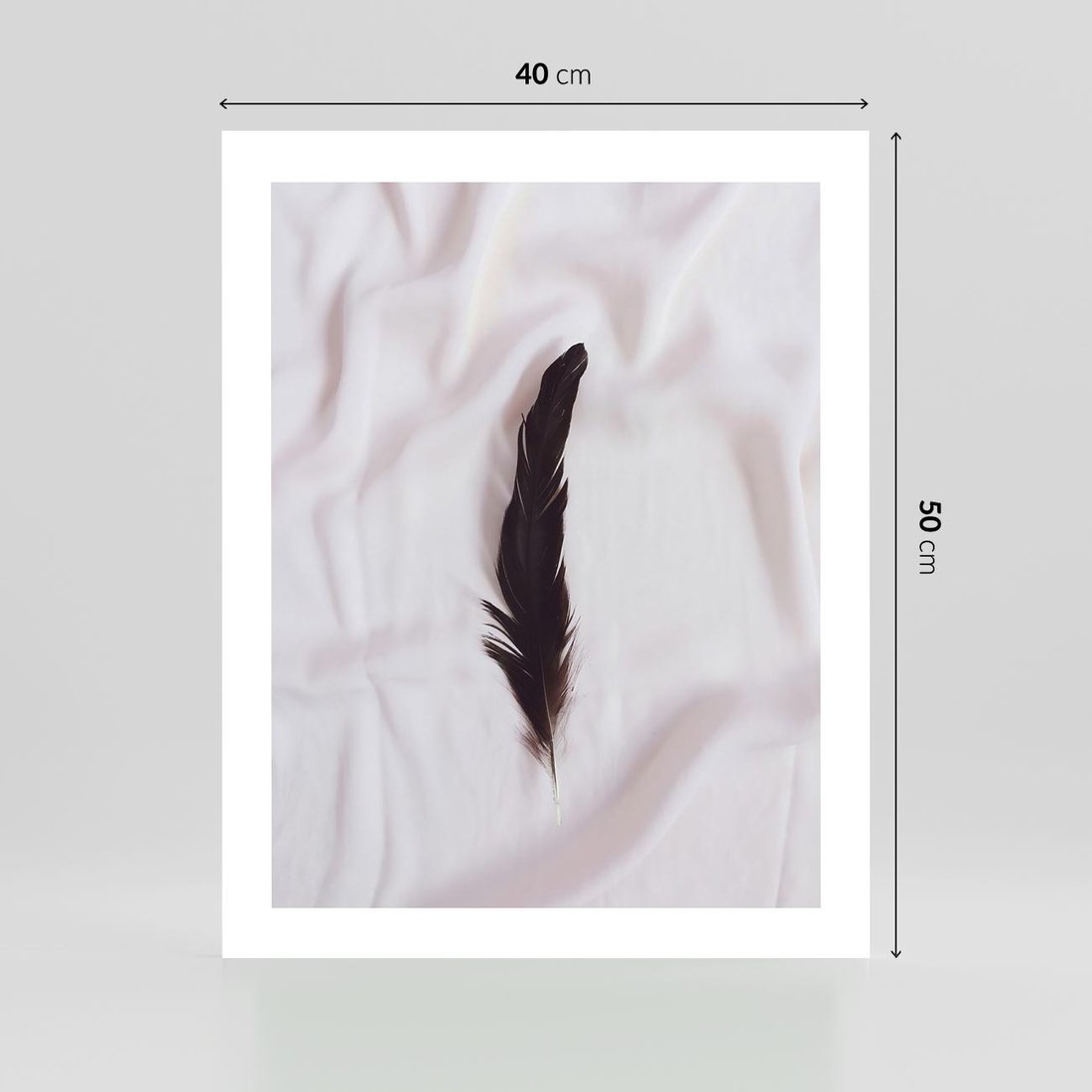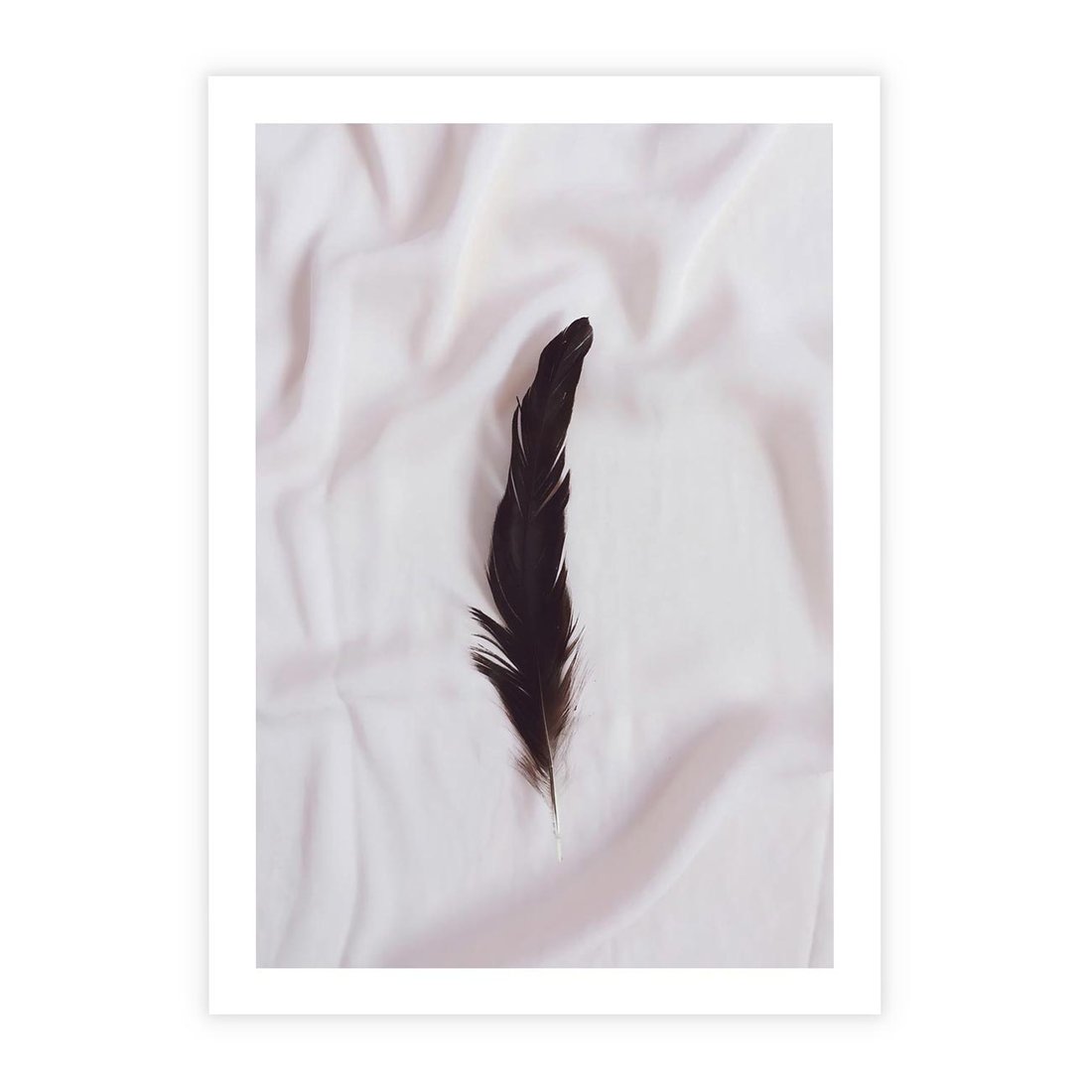 Plakat bez ramy 40x50 - Prosta Elegancja - czarne pióro na białej pościeli, minimalizm