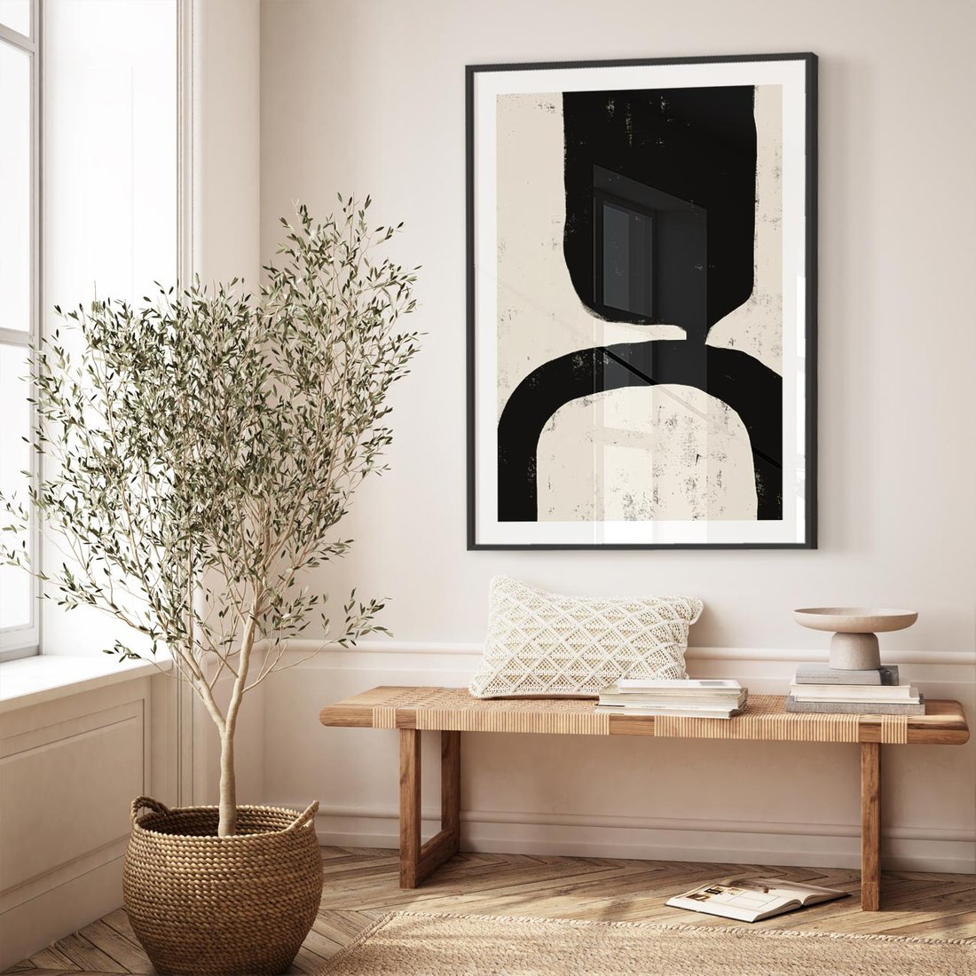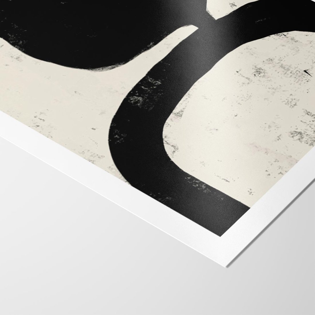 Ta abstrakcyjna sztuka w minimalistycznym stylu skupia się na kontrastach czerni i bieli, tworząc nieregularne kształty, które emanują dramaturgią. To doskonały dodatek do nowoczesnych przestrzeni, zachwycając swoją wyrazistością i subtelnością.