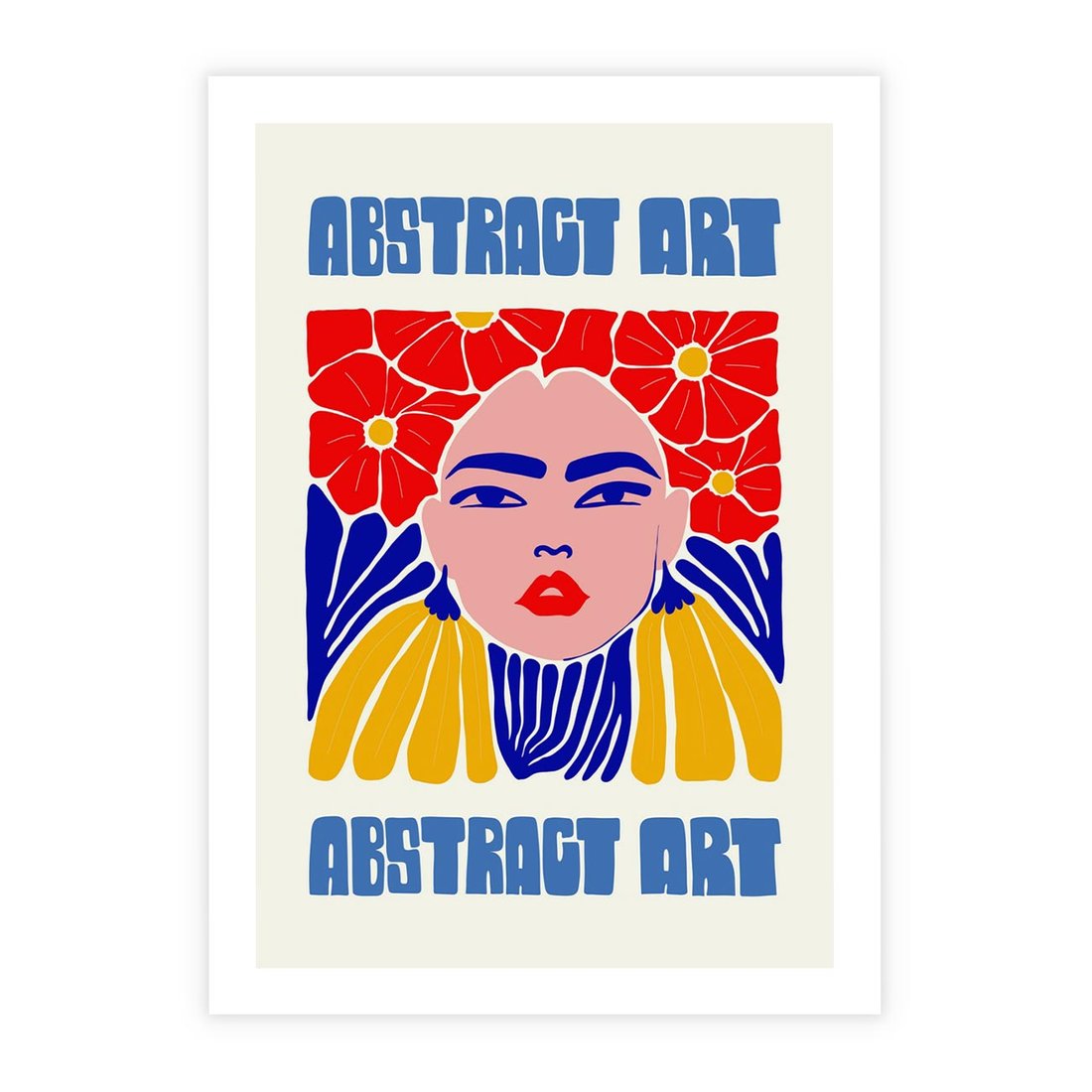 Ten abstrakcyjny plakat przedstawia kobietę z kwiatami we włosach, łącząc sztukę i naturę w nowoczesnej wizji. Kompozycja emanuje pięknem i wyrafinowaną ekspresją.