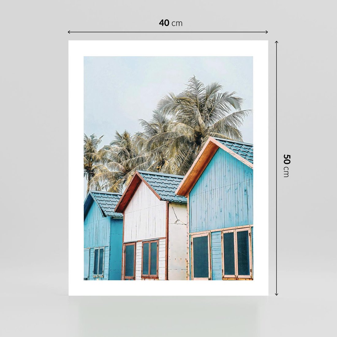 Plakat bez ramy 40x50 - Rajskie Wakacje - domki na plaży, błękitne domki