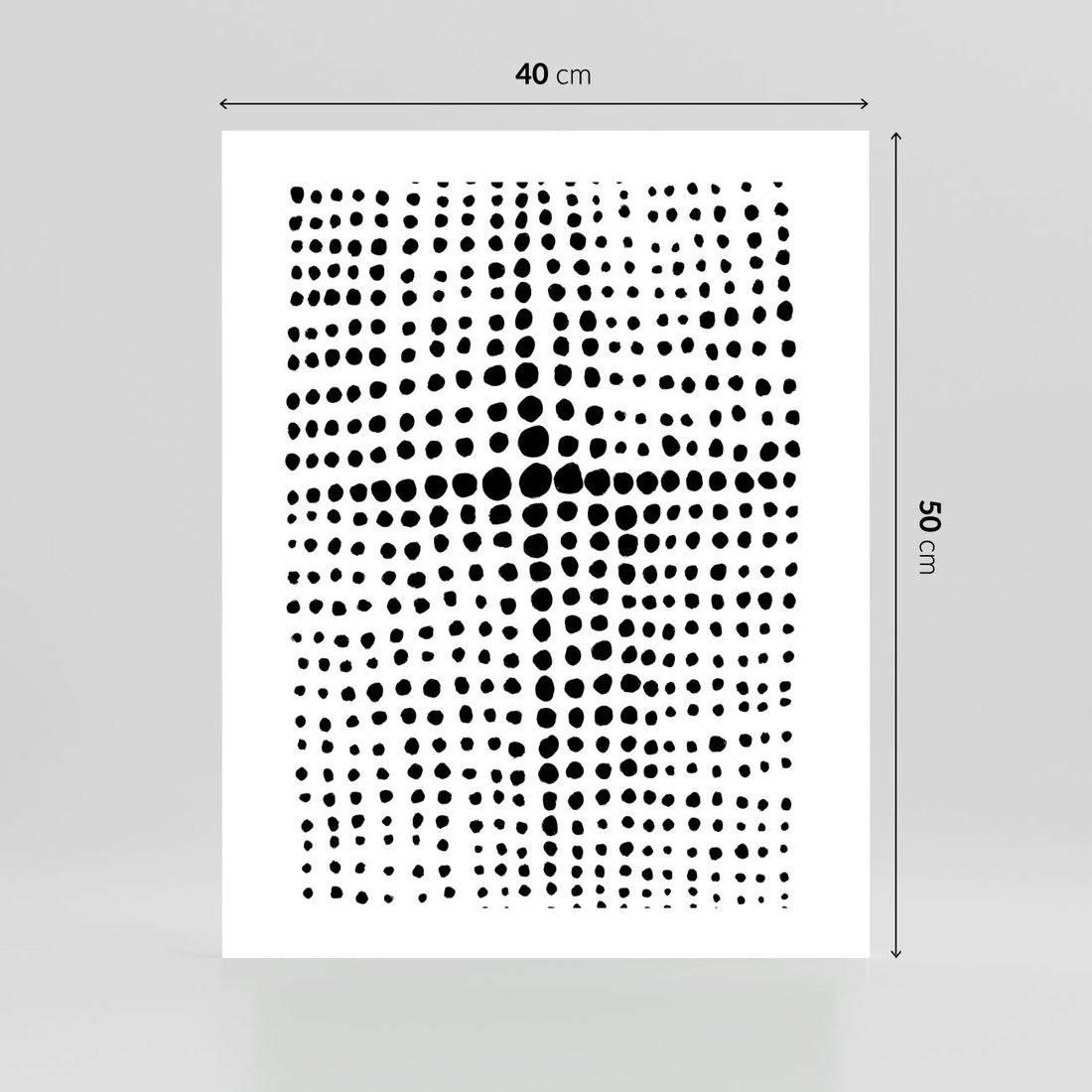 Plakat bez ramy 40x50 - Refleksje Monochromatycznych Widoków - abstrakcyjna kompozycja z czarnych kropek, minimalistyczny czarno bialy plakat