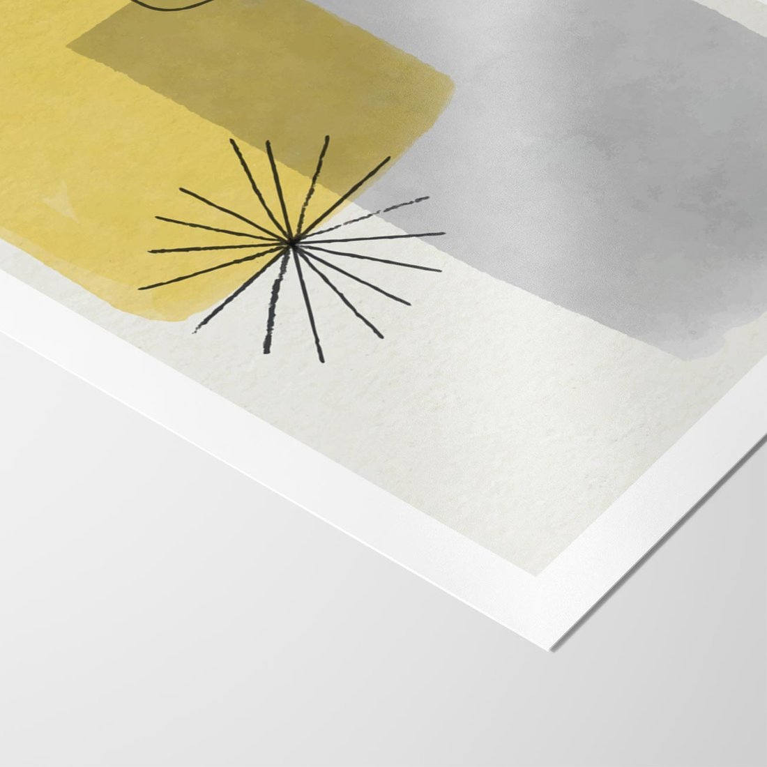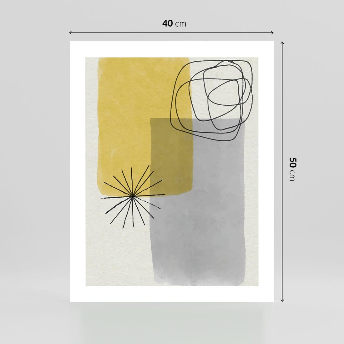 Odkryj abstrakcję w postaci akwarelowych plam w kontrastujących odcieniach czerni i żółci. To dynamiczne połączenie kolorów i form tworzy ekscytującą kompozycję, która przyciąga uwagę i pobudza zmysły.
