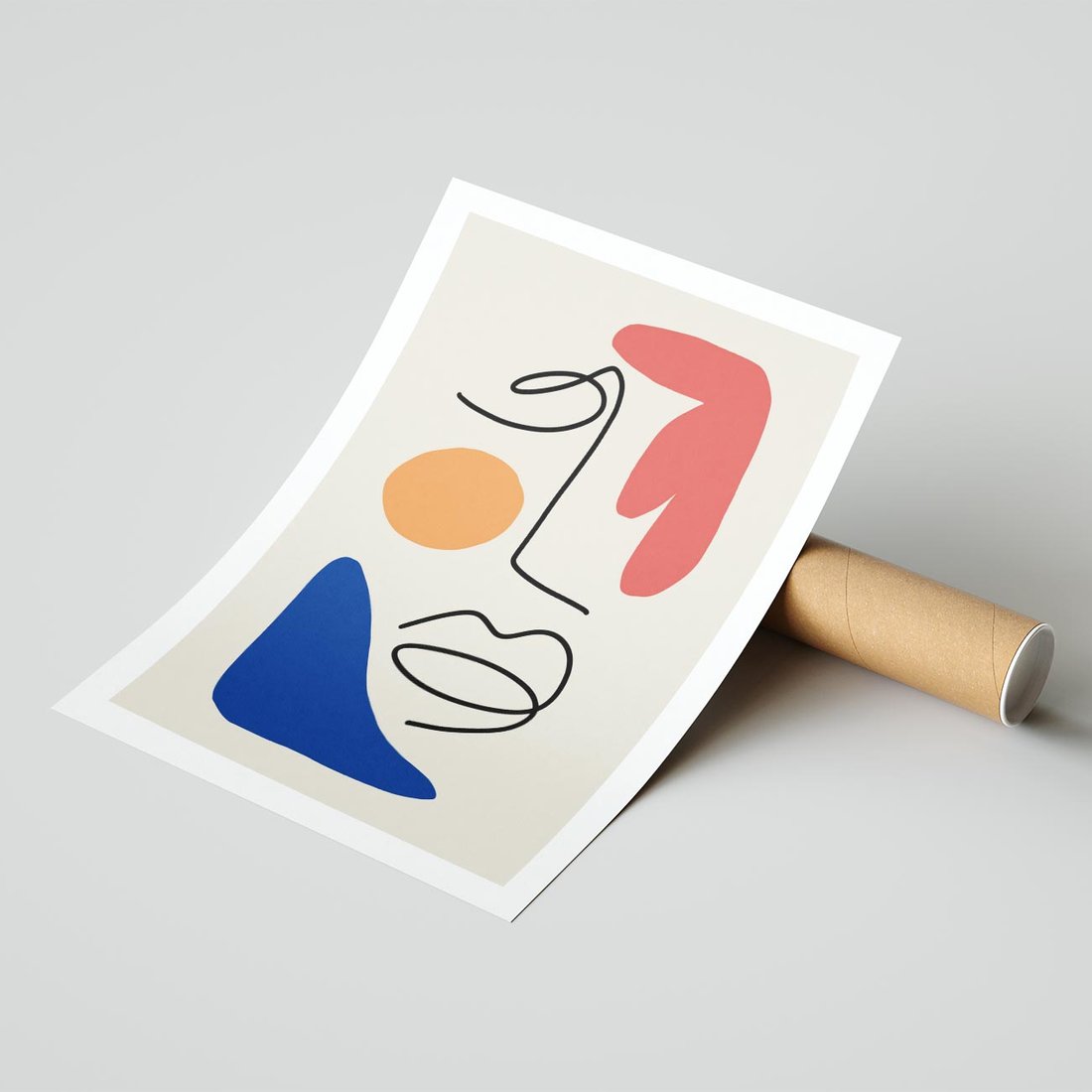 Plakat bez ramy 40x50 - Rozbijające Granice Kształtów - abstrakcyjny obraz, przypomina twarz