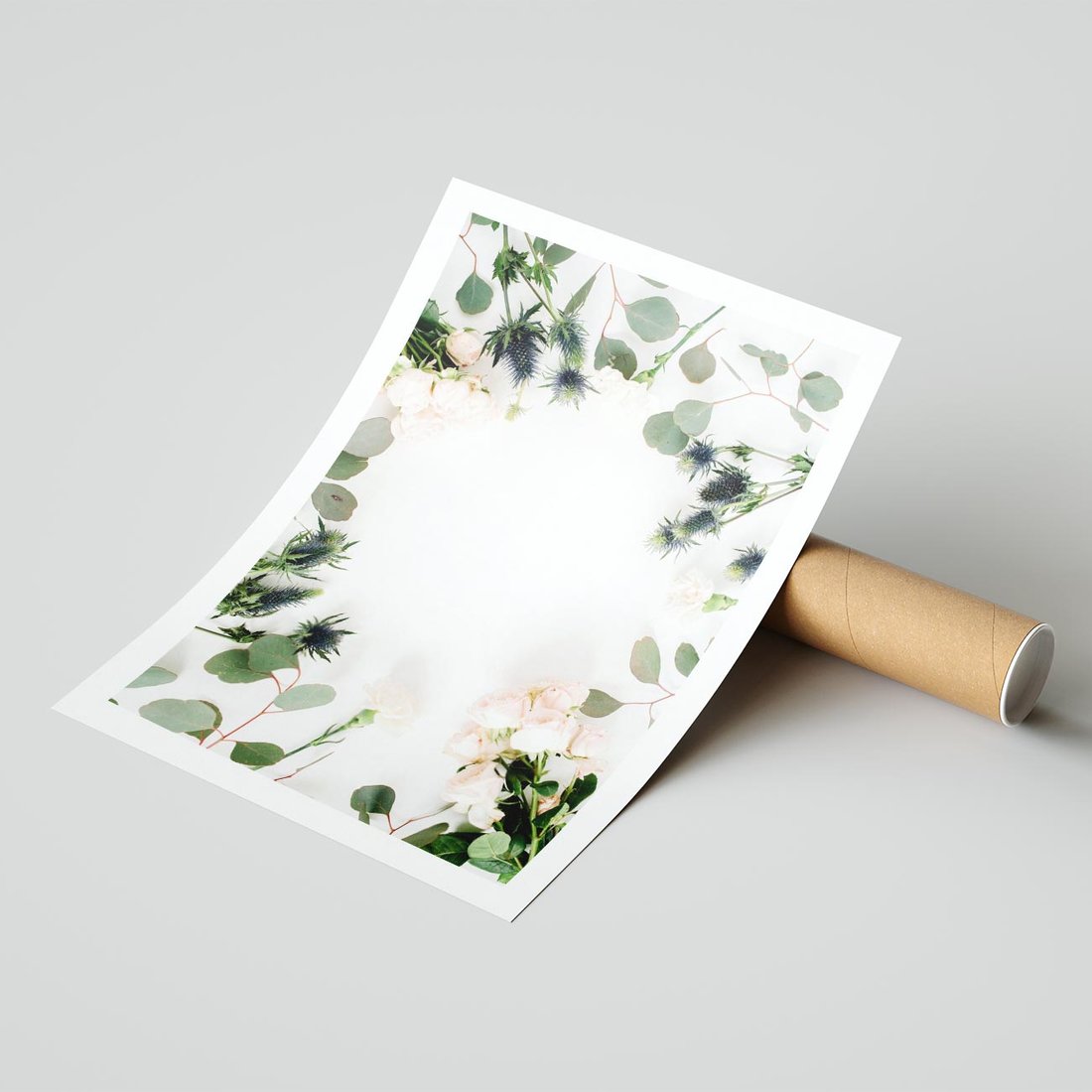 Plakat bez ramy 40x50 - Róże i Zielone Liście - kompozycja kwiatowa, róże