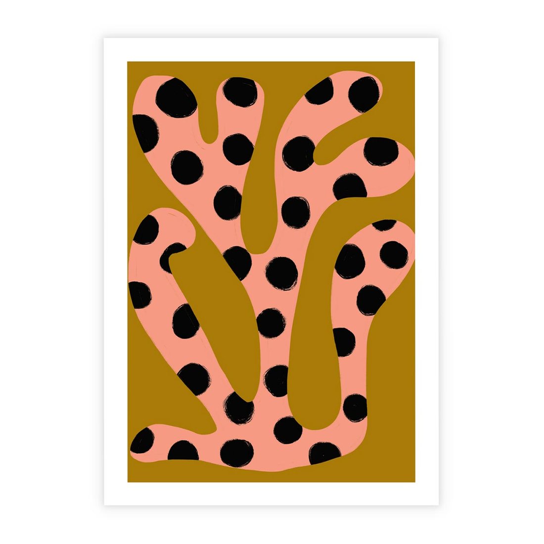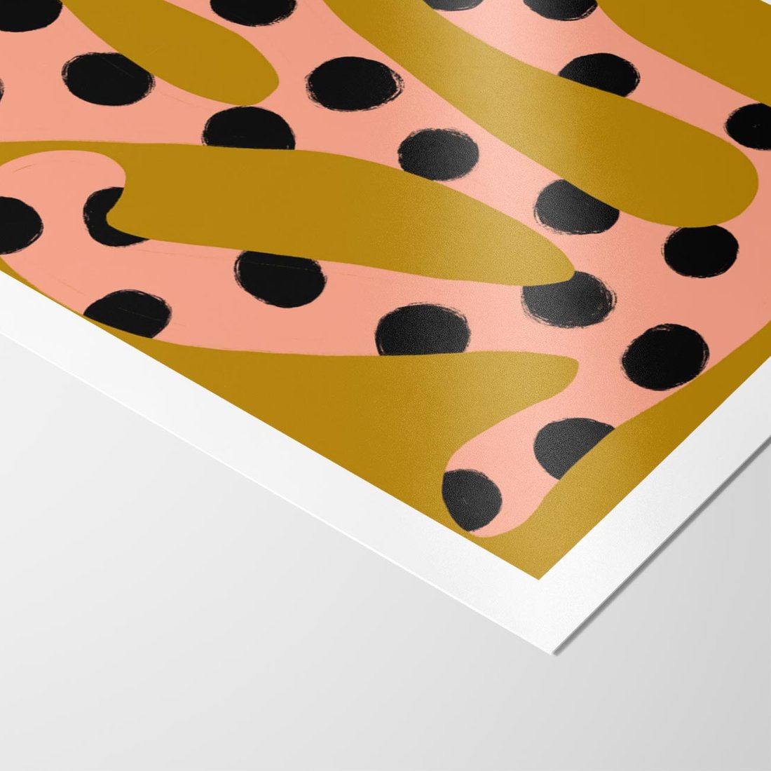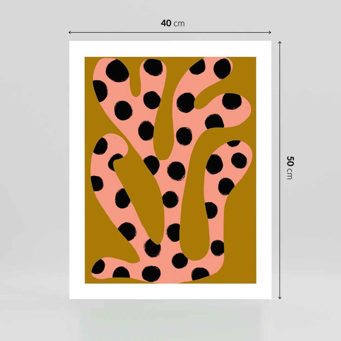 To abstrakcyjne dzieło sztuki w stylu boho zachwyca nietypowymi kształtami, dziwnymi kropkami i ciekawymi ciapkami. Tworzy unikalną kompozycję, która odzwierciedla luźną swobodę charakterystyczną dla tego stylu. Te elementy razem tworzą niezwykłą wizualną opowieść, przenosząc widza w odmienny wymiar ekspresji artystycznej.