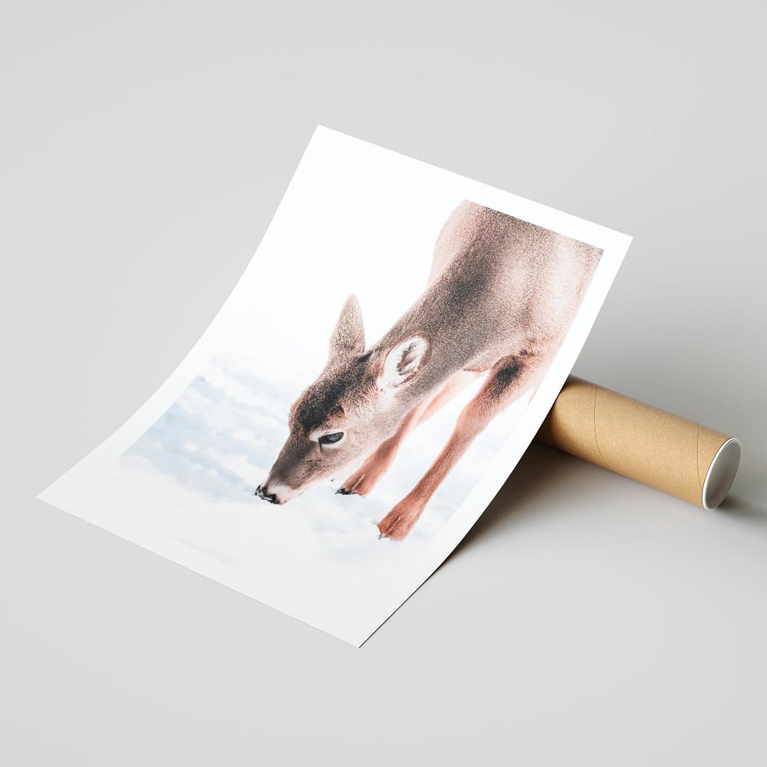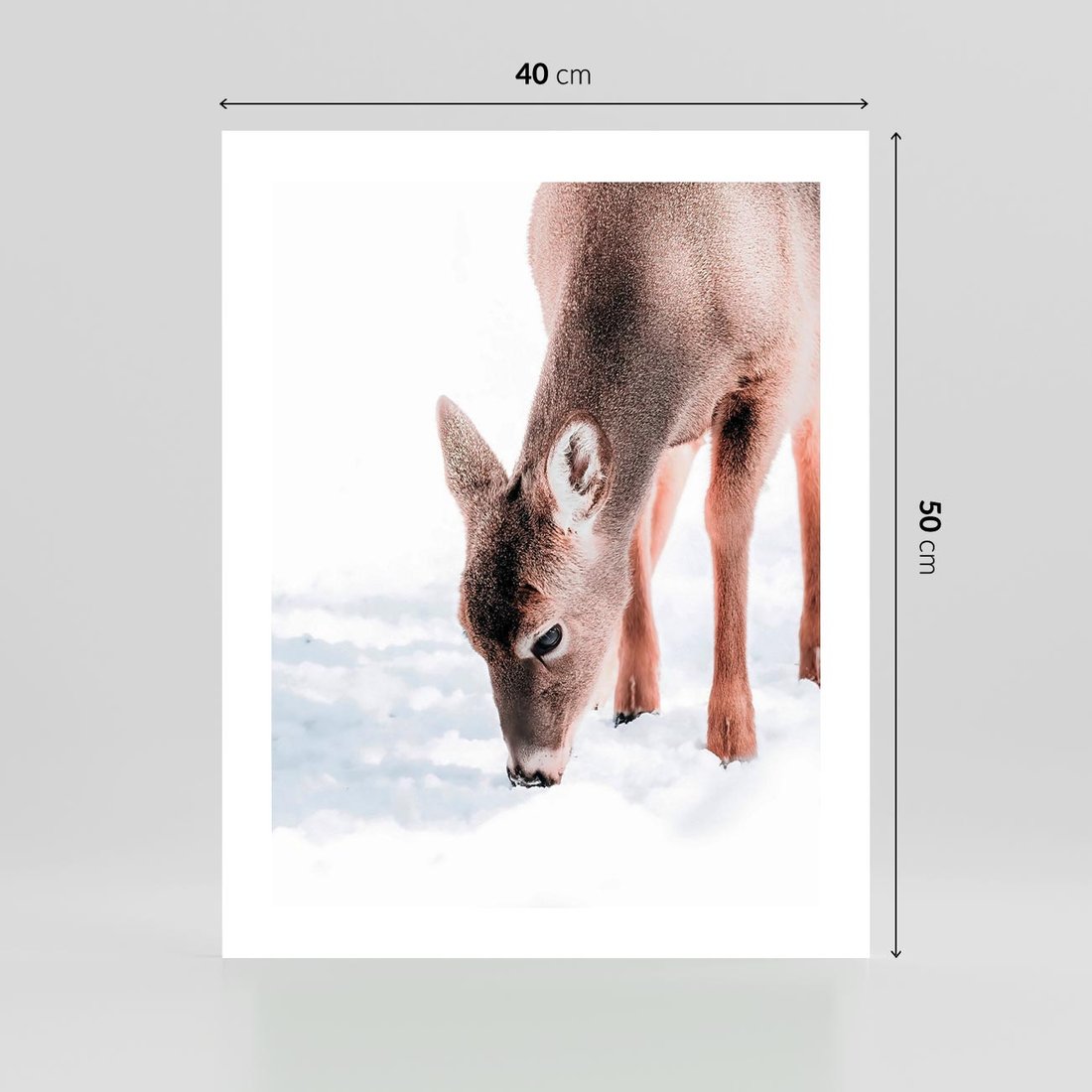 Plakat bez ramy 40x50 - Sarna w Zimowym Raju - sarna, na śniegu