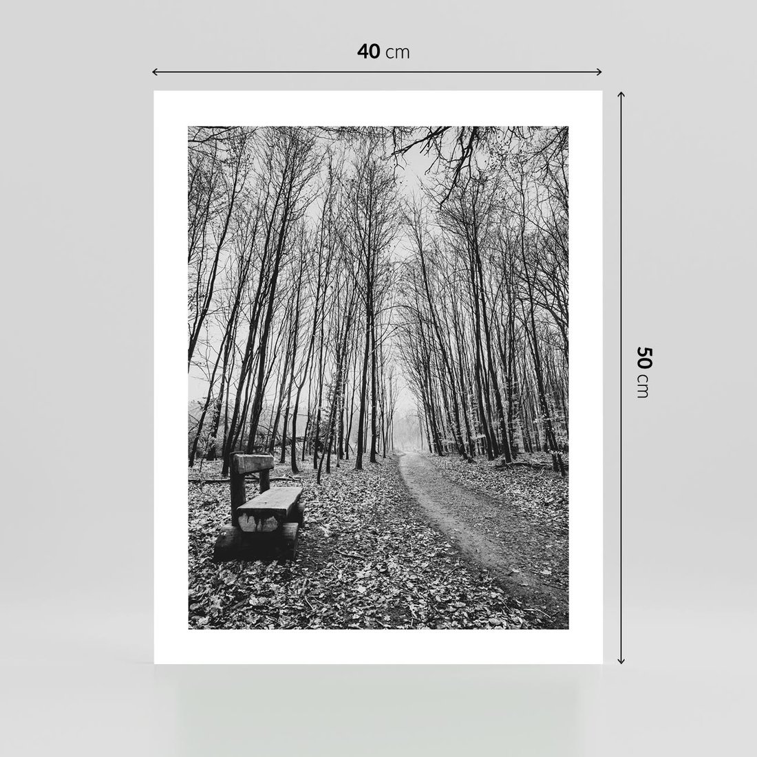 Plakat bez ramy 40x50 - Spadające Liście - czarno białe zdjecie, park