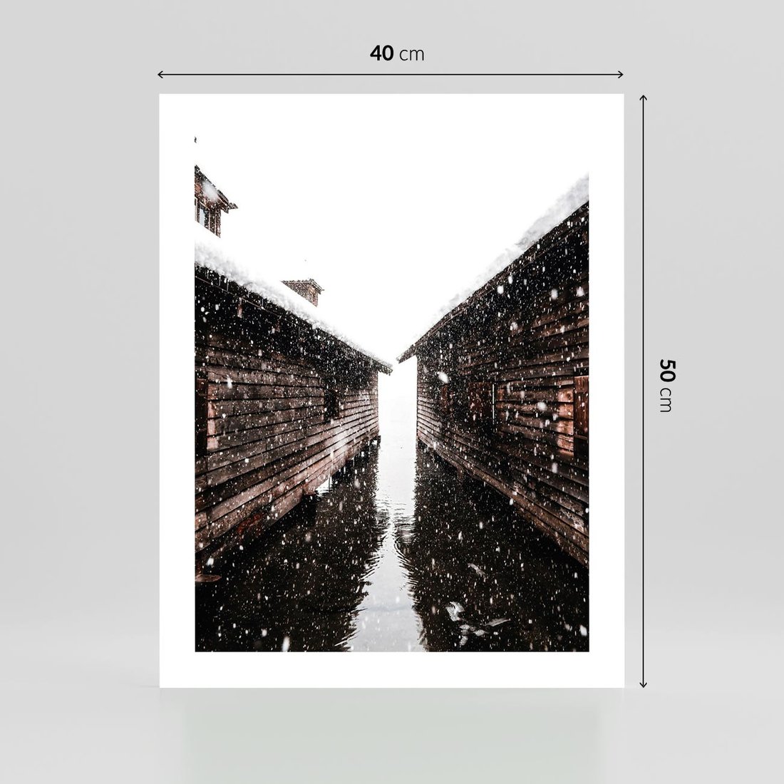 Plakat bez ramy 40x50 - Spadający Śnieg - domek górski, w zimie