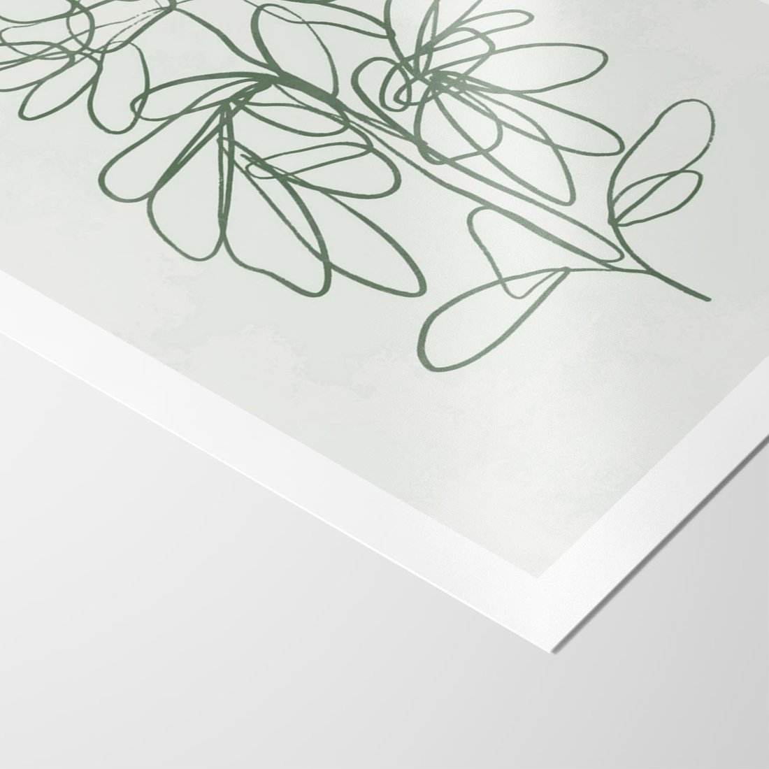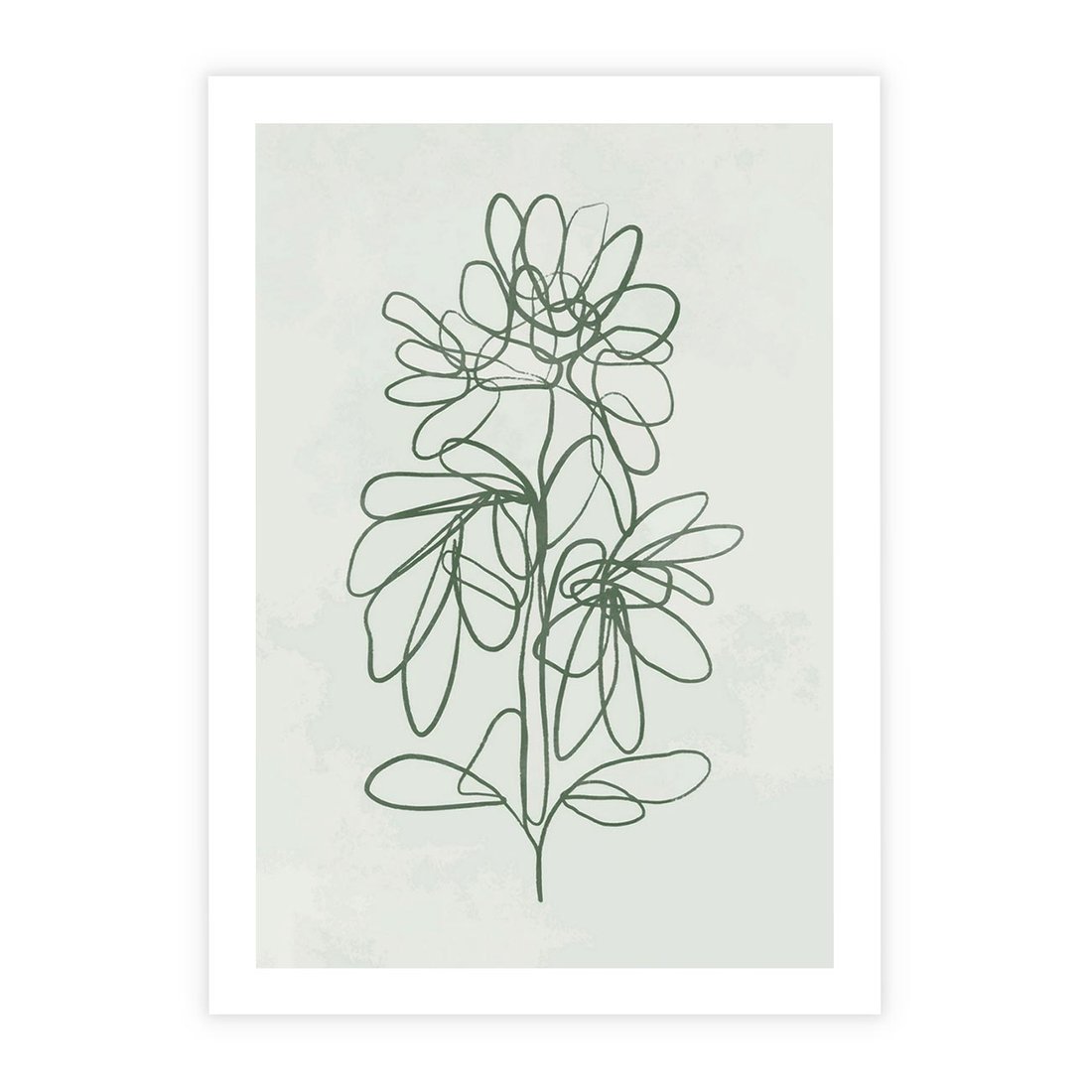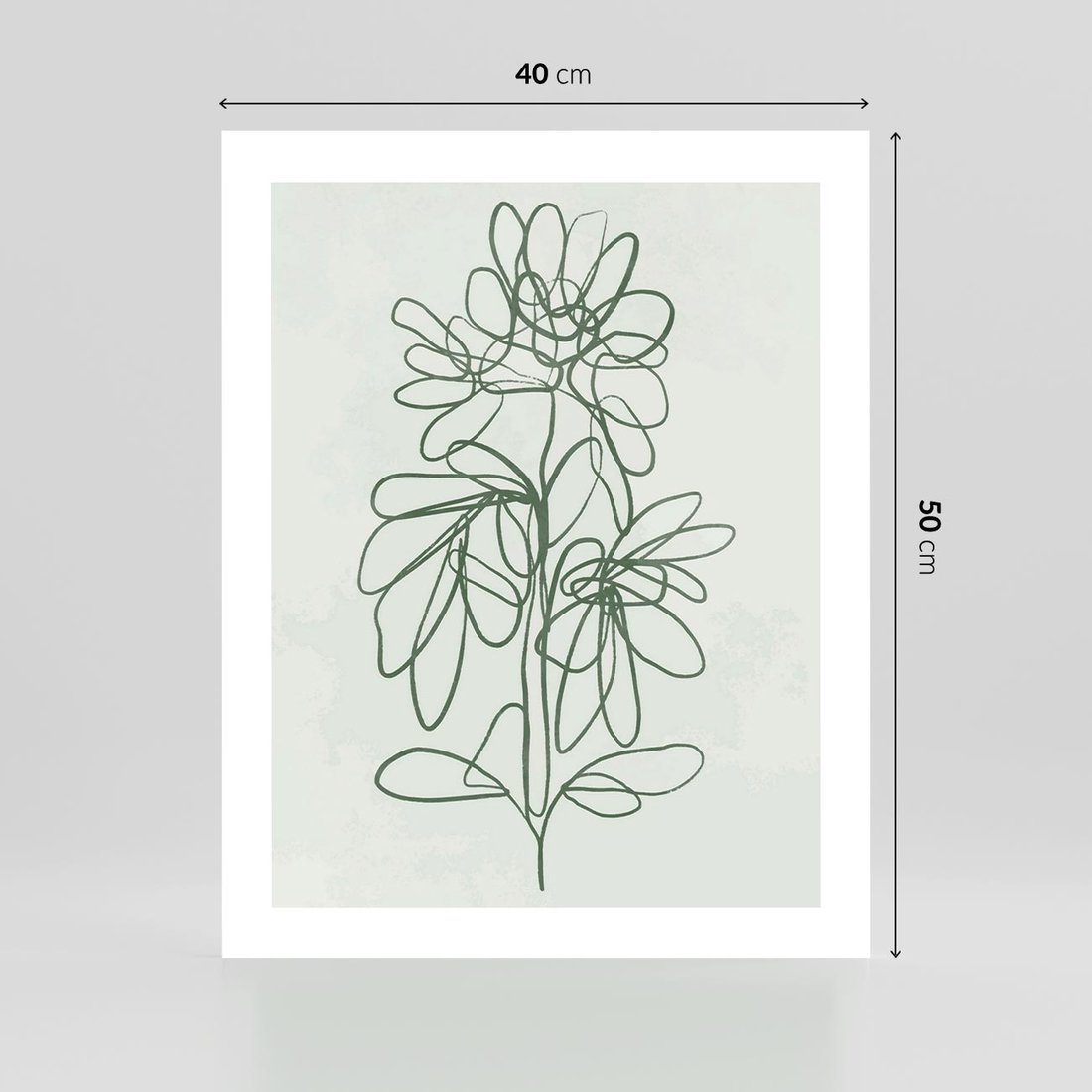 Zielony plakat z delikatnymi roślinnymi inspiracjami doskonale wpasuje się w nowoczesne wnętrza. Minimalistyczny design nadaje mu harmonijny wygląd, który dodaje spokoju i naturalności przestrzeni.