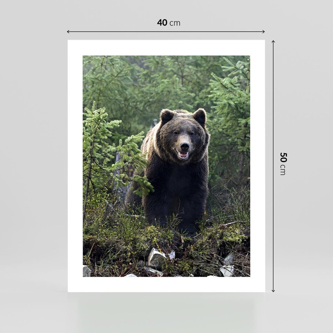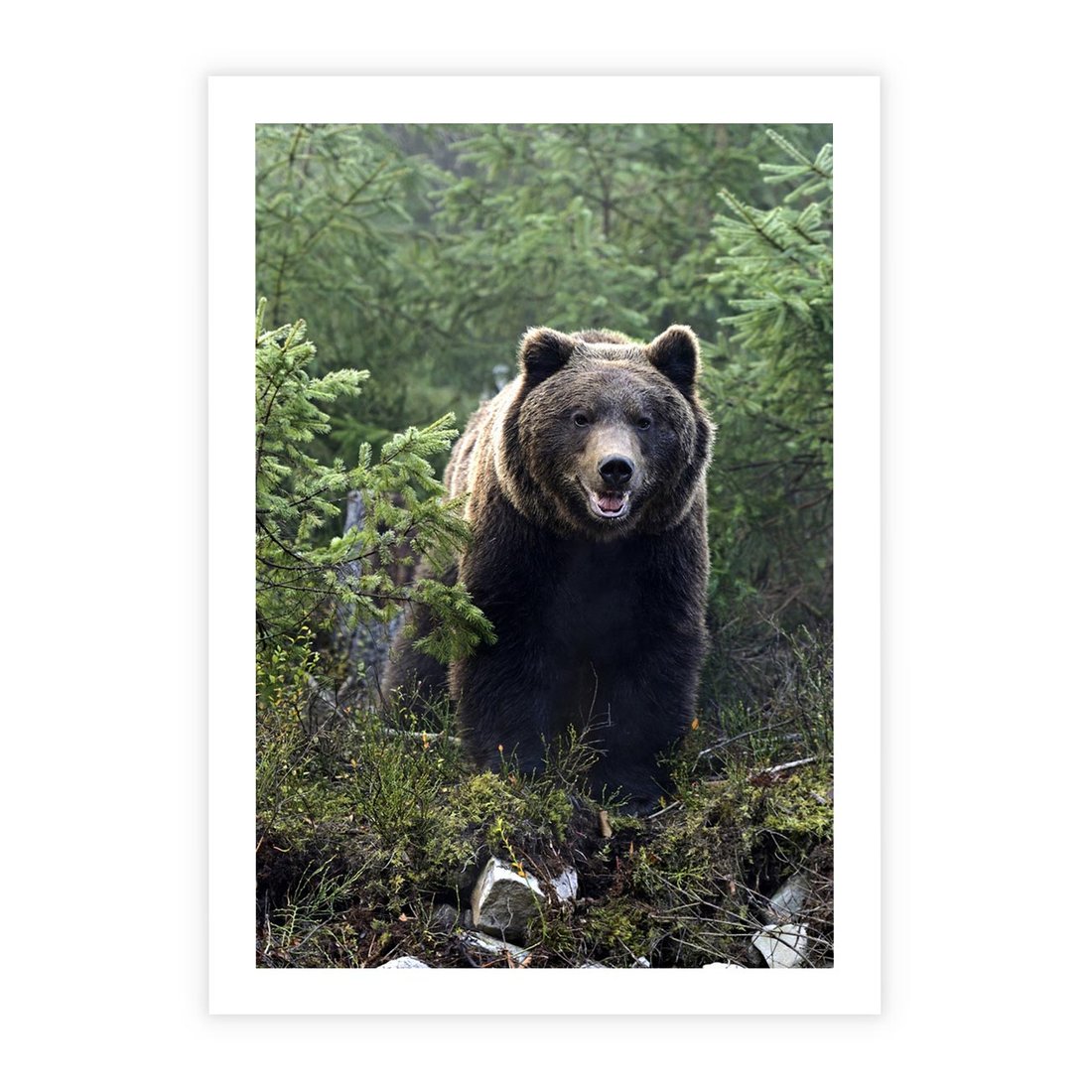 Plakat bez ramy 40x50 - Spotkanie z Niedźwiedziem w Lesie - niedźwiedź, las