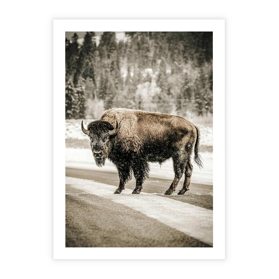 Plakat bez ramy 40x50 - Spotkanie z Żubrem na Leśnej Drodze - żubr, las