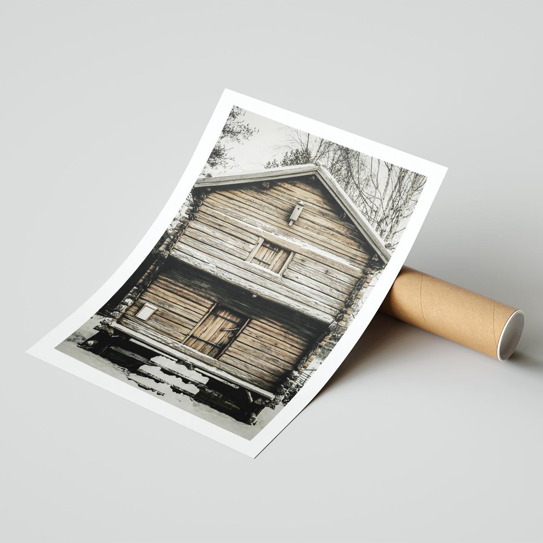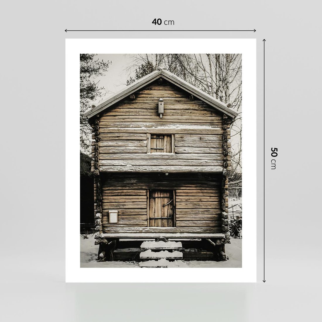 Plakat bez ramy 40x50 - Stary Drewniany Dom w Śniegu - stary drewniany dom, zima