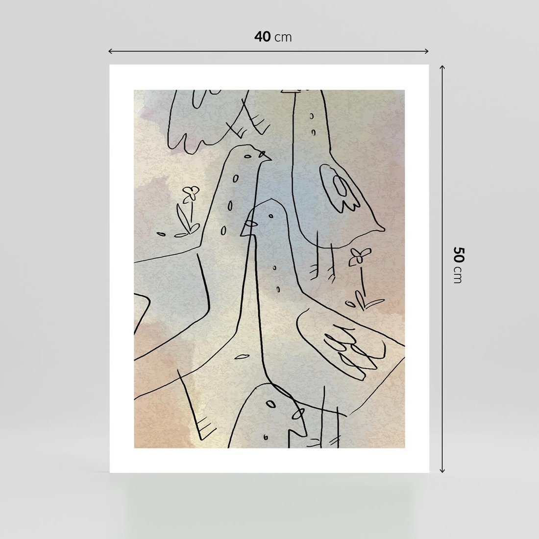 Plakat bez ramy 40x50 - Strukturalna Gromada - abstrakcyjny plakat, szkic ptaków