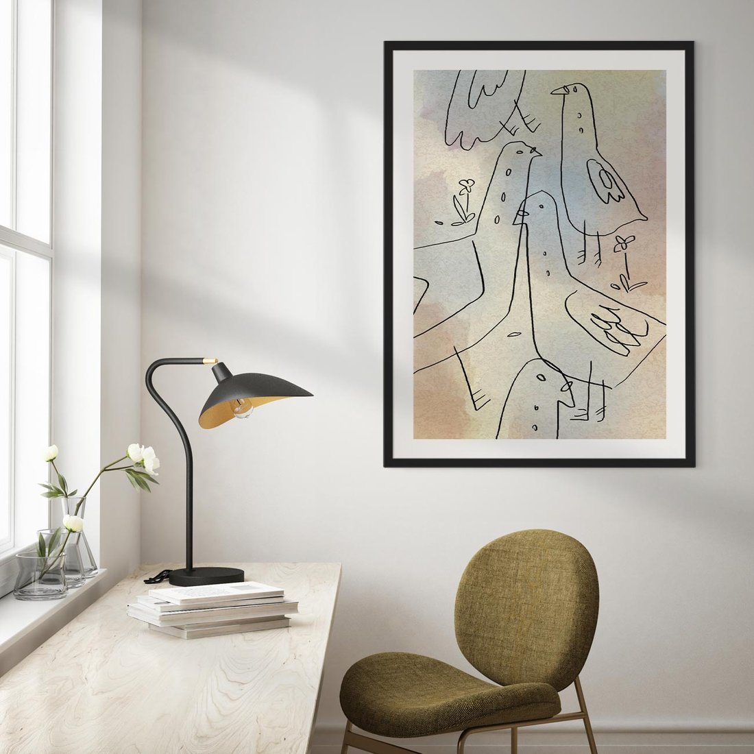 Nasz abstrakcyjny plakat w stylu modernizmu przedstawia wyjątkowy szkic ptaków. Zgeometryzowane formy i dynamiczne linie tworzą unikalną interpretację natury, oddając hołd dla nowatorskiej sztuki. Ten plakat to połączenie kreatywności i estetyki, doskonałe dla miłośników sztuki poszukujących oryginalnych i nowoczesnych akcentów.