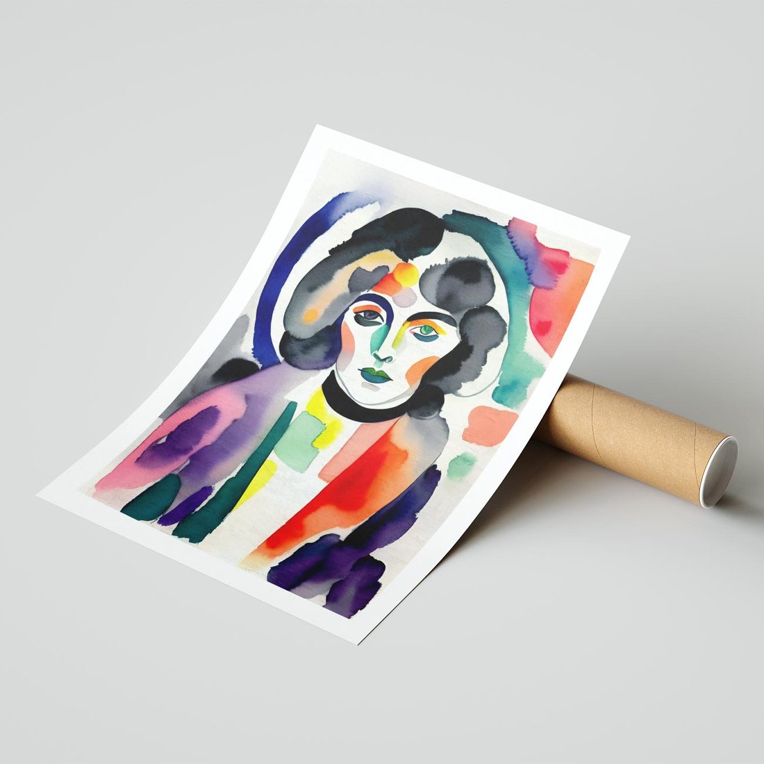 Plakat bez ramy 40x50 - Subtelne Akwarelowe Ulotności - abstrakcyjny akwarelowy portret kobiety, rozmyte farby