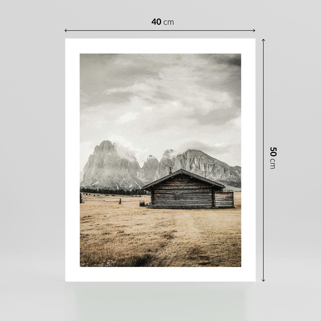 Plakat bez ramy 40x50 - Surowa Przestrzeń i Górski Ustronny Azyl - chatka w górach, góry