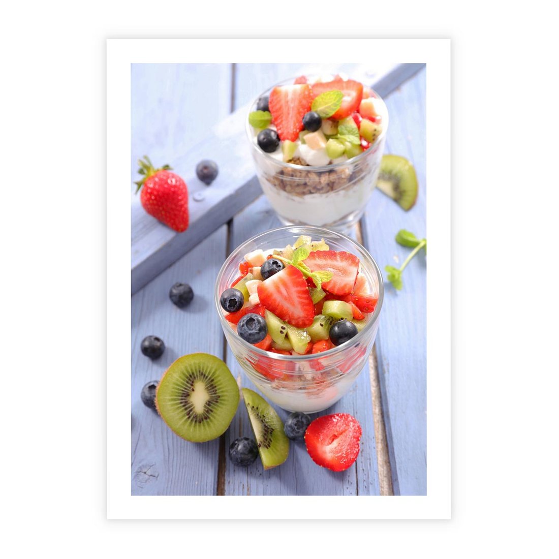 Ta kolorowa kompozycja sałatki z owocami dostarczy świeżości i zdrowia do Twojego wnętrza. Ciesz się soczystymi kolorami i smakowitymi połączeniami. Dodaj energetycznego i zdrowego nastroju do swojego wnętrza.