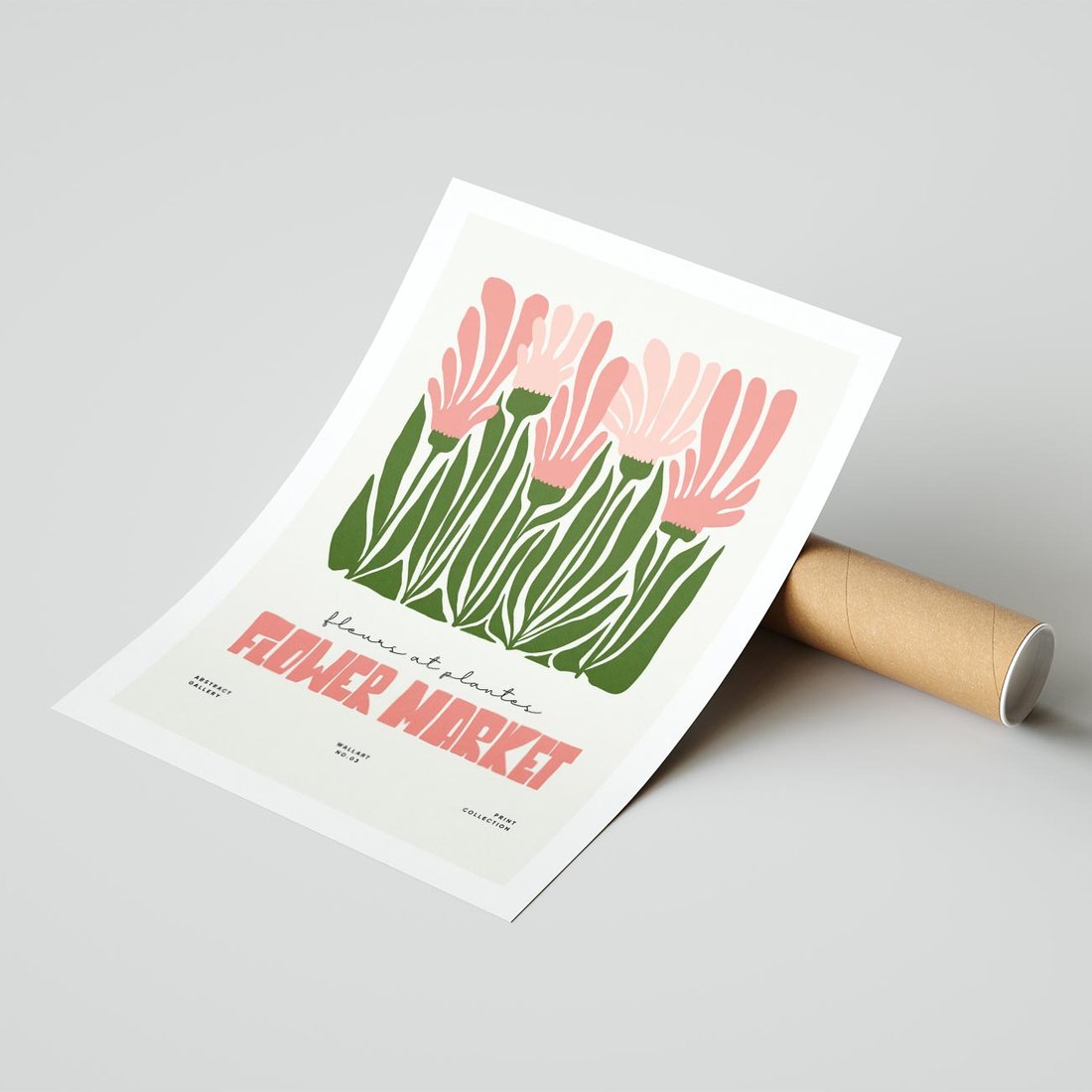 Ta nowoczesna grafika przedstawia kompozycję różowych kwiatów w stylu minimalistycznym. Zestawienie kwiatów z nowoczesną typografią tworzy dynamiczną i estetyczną całość. To obraz, który przynosi do wnętrza subtelne akcenty natury w nowoczesnym duchu, inspirując jednocześnie pięknem i harmonią.