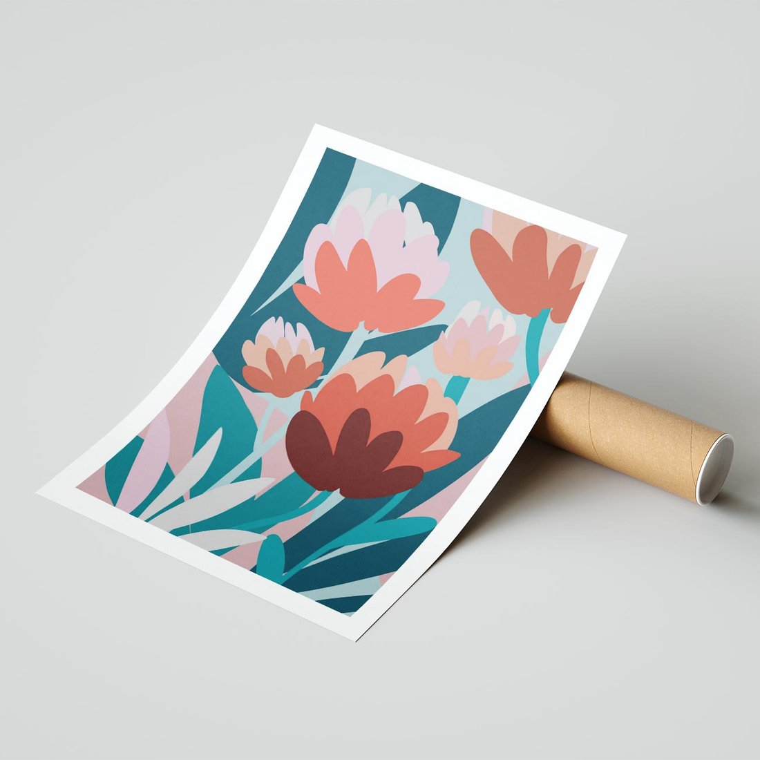 Plakat bez ramy 40x50 - Symfonia Kwiatów - abstrakcyjna kompozycja kwiatowych form, kolor zgaszone