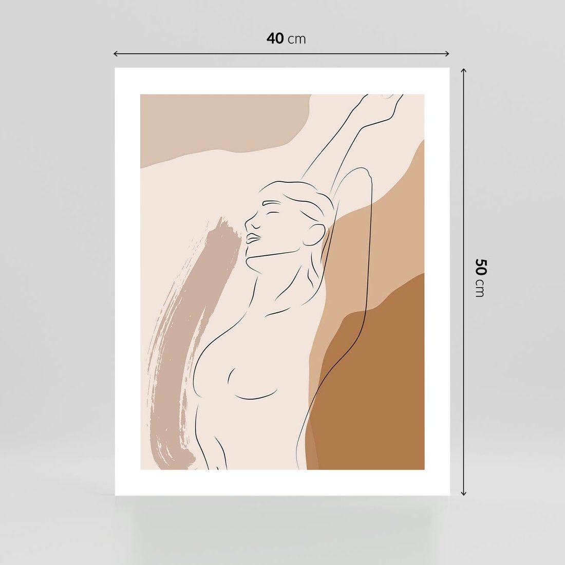 Plakat bez ramy 40x50 - Sztuka Nagiej Formy - szkic nagiej kobiety, kolory beżowe