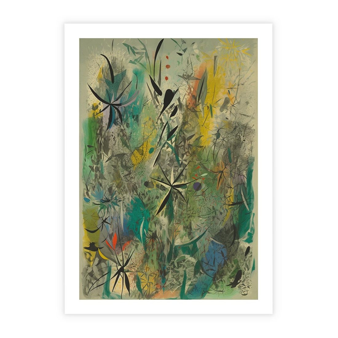 Ten abstrakcyjny obraz to prawdziwa eksplozja kolorów i małych, zawiłych elementów. Ich kształty tworzą harmonijną całość, wzbogaconą o roślinne motywy. Ciekawa i intrygująca kompozycja przyciąga uwagę i inspiruje do refleksji.